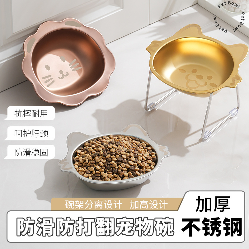 亚马逊304不锈钢狗碗跨境高脚猫碗防滑宠物碗护颈猫粮碗狗盆批发
