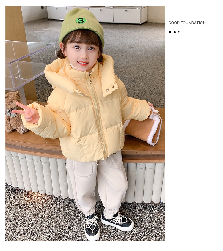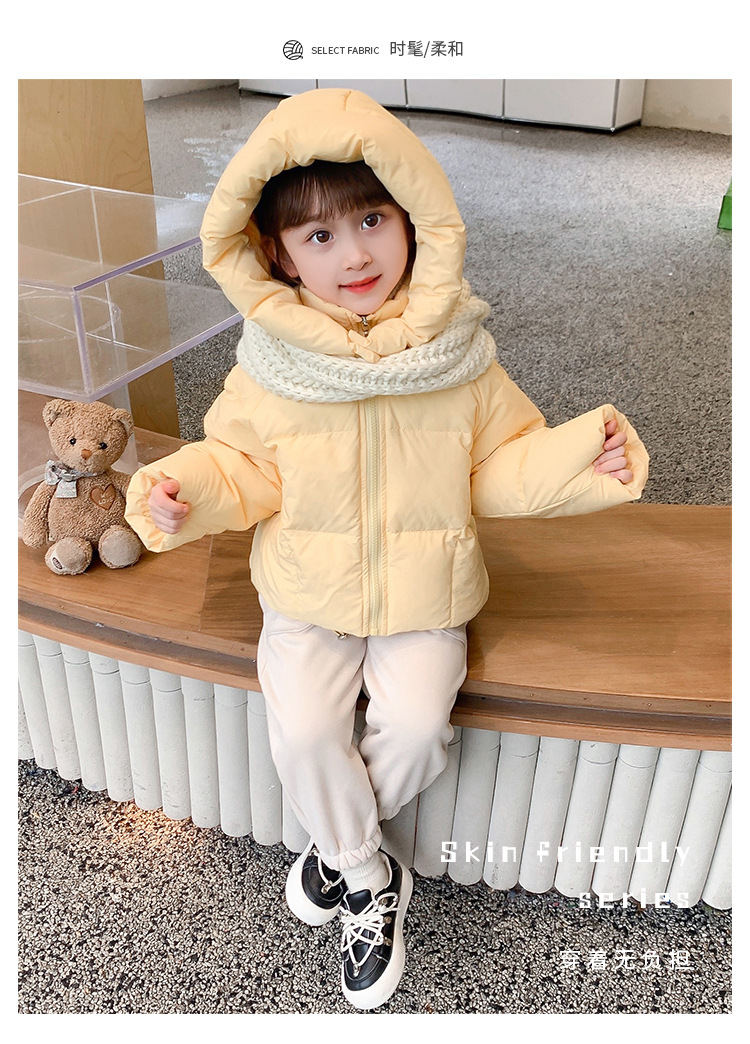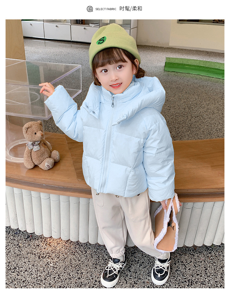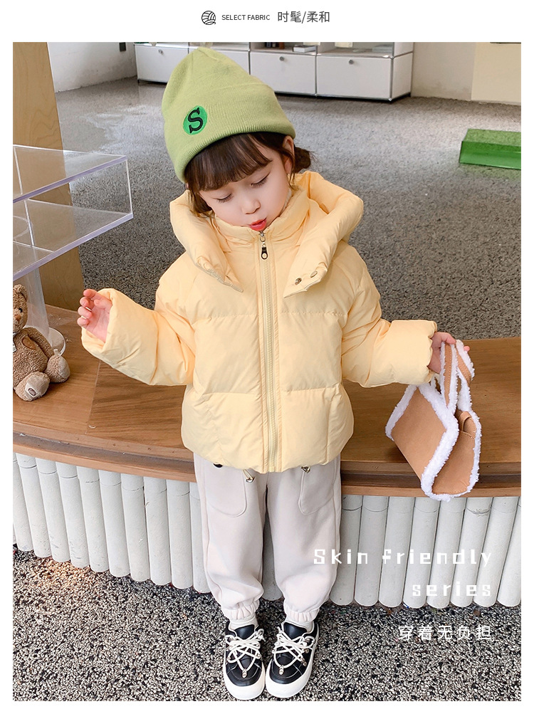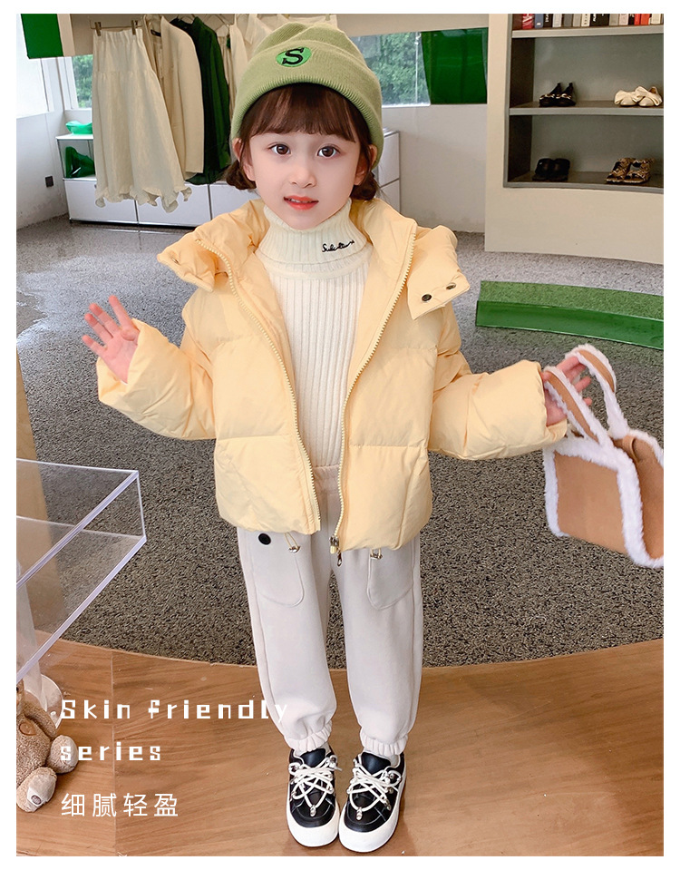 女の子のダウンジャケット2022冬の新しいパン服の洋風の女の子の帽子のキャンディー色のダウンジャケット