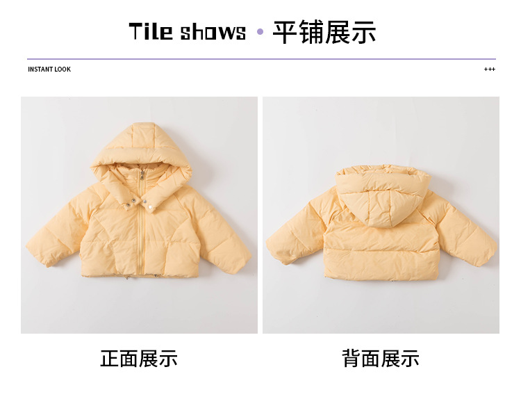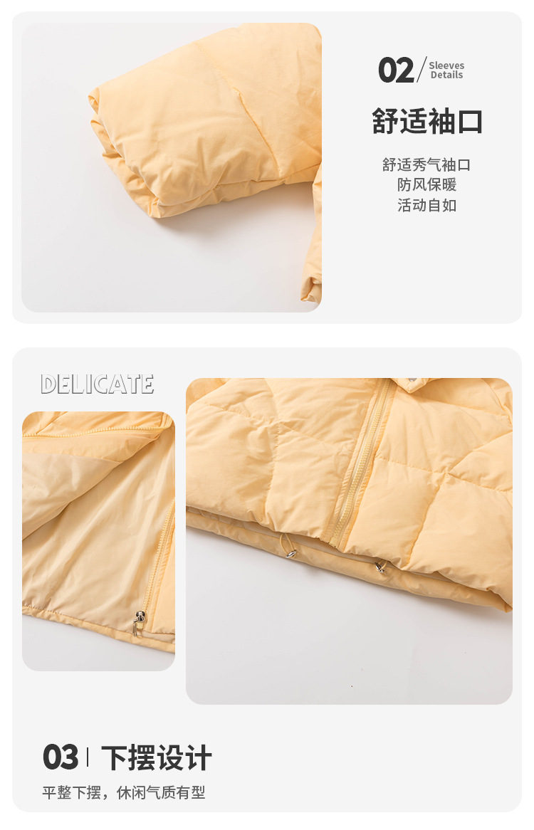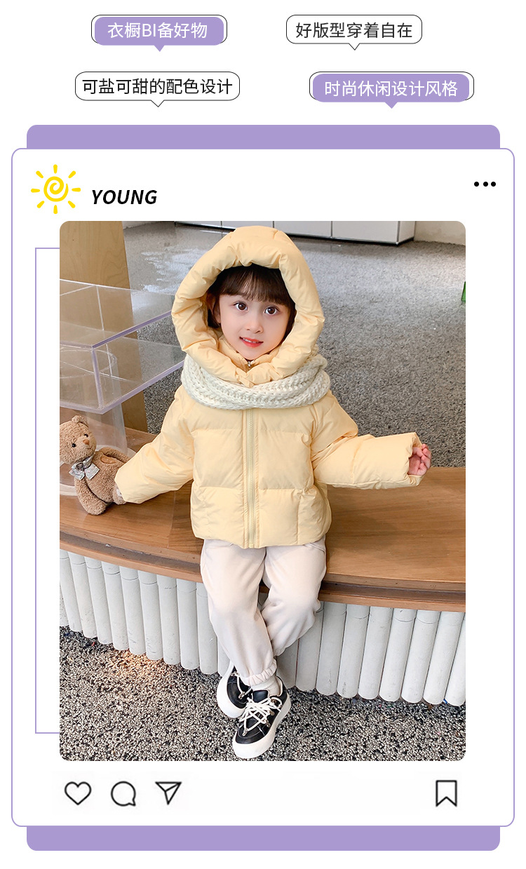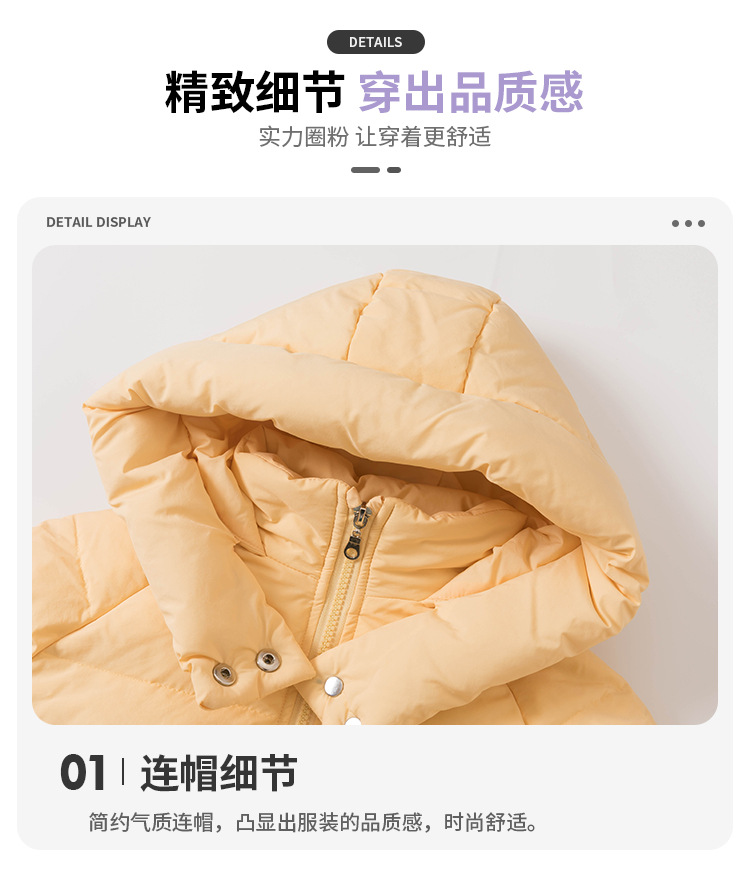 女童三色连帽羽绒服冬季2025新款洋气轻薄儿童加厚面包服百搭款。