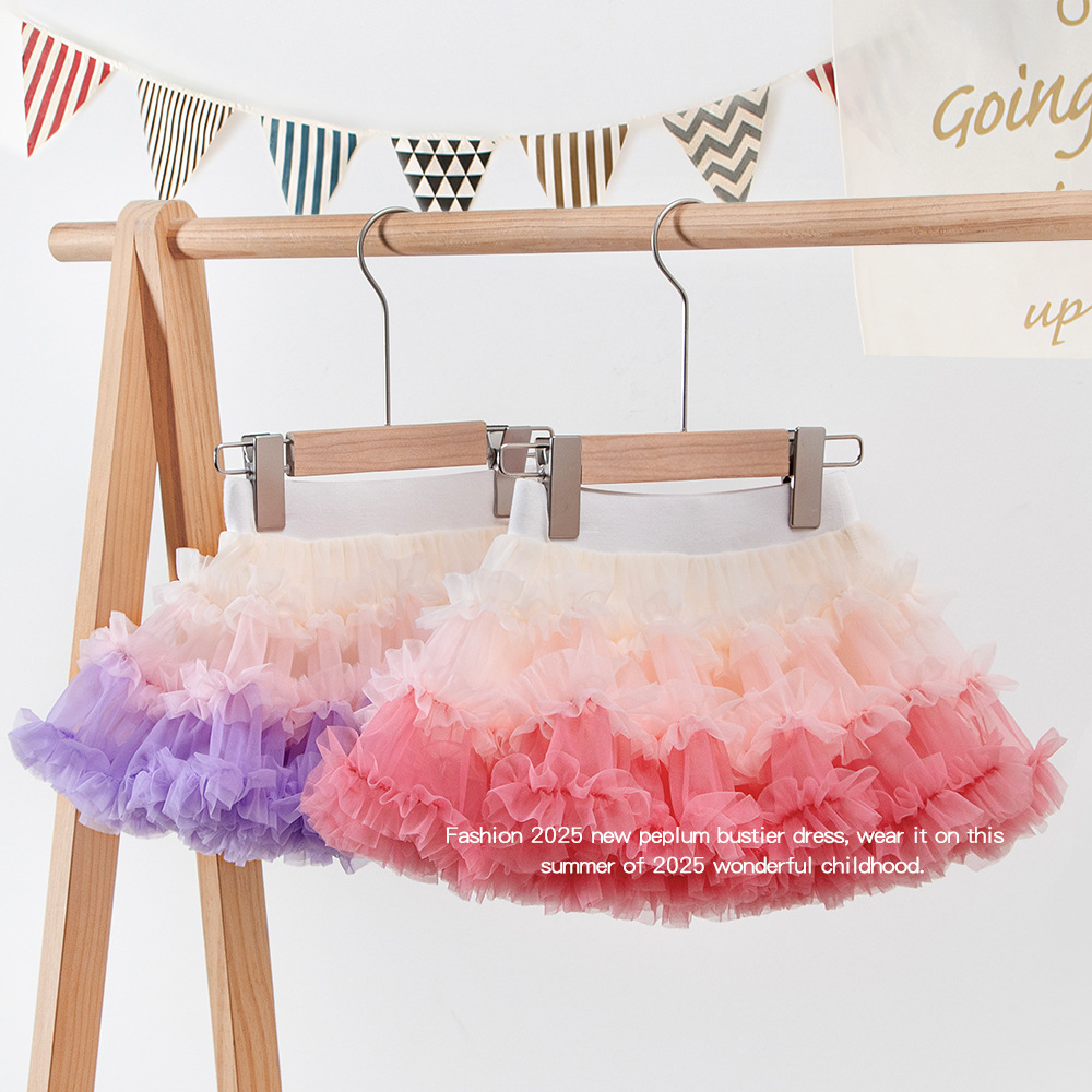 2025春夏クロスボーダー起爆女の子tuuスカート女性宝洋気ケーキスカート子供虹グラデーション色蓬蓬スカート