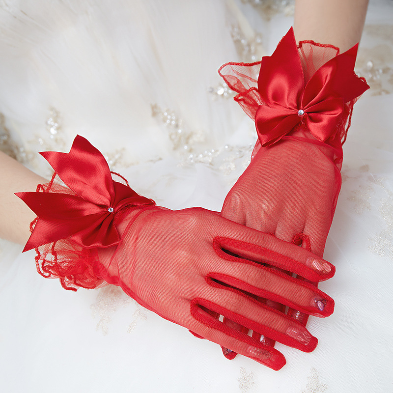 冬の新婦の赤い手袋のウェディングドレスの秀禾の敬酒服の袖のカバーの保温は厚いです。