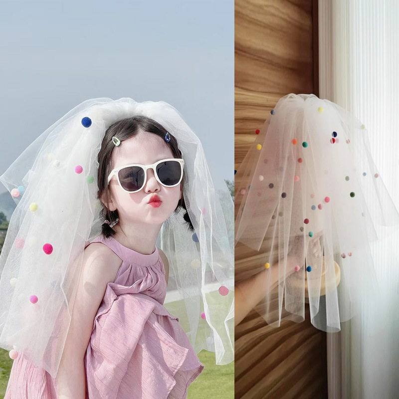 ドーパミンの女の子の頭の糸の王女の赤ちゃんの誕生日のヘアピンの韓国式の波の点のカラーボールの蓬の糸の新婦の結婚式の髪飾り