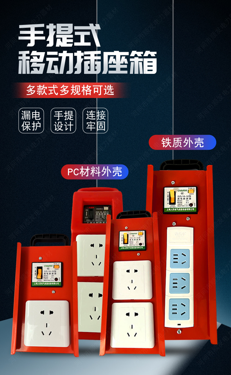 ポータブルコンセント、工事現場用小型一時的漏電保護接続三段配電ボックス