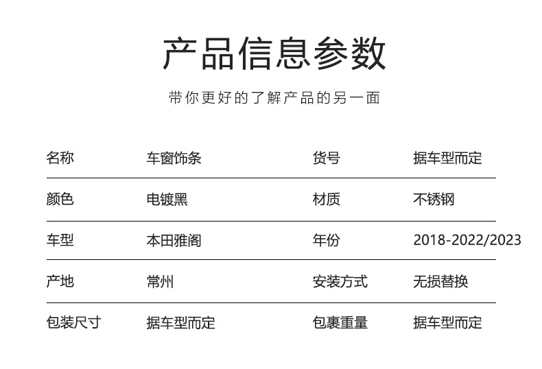 専用2018-2023号凱美瑞車窓飾り車体ステンレス窓亮条銀色/焼付黒