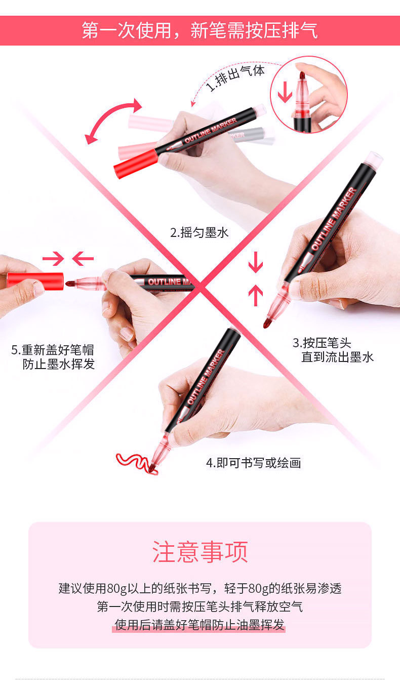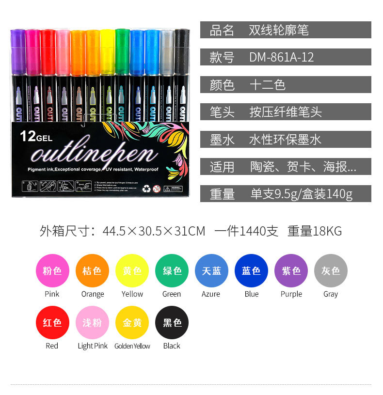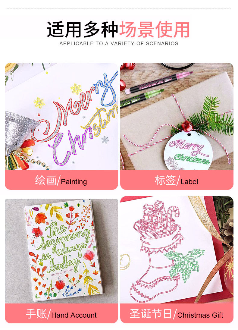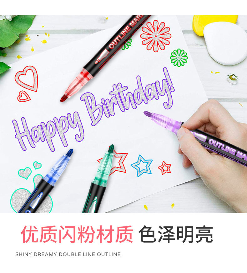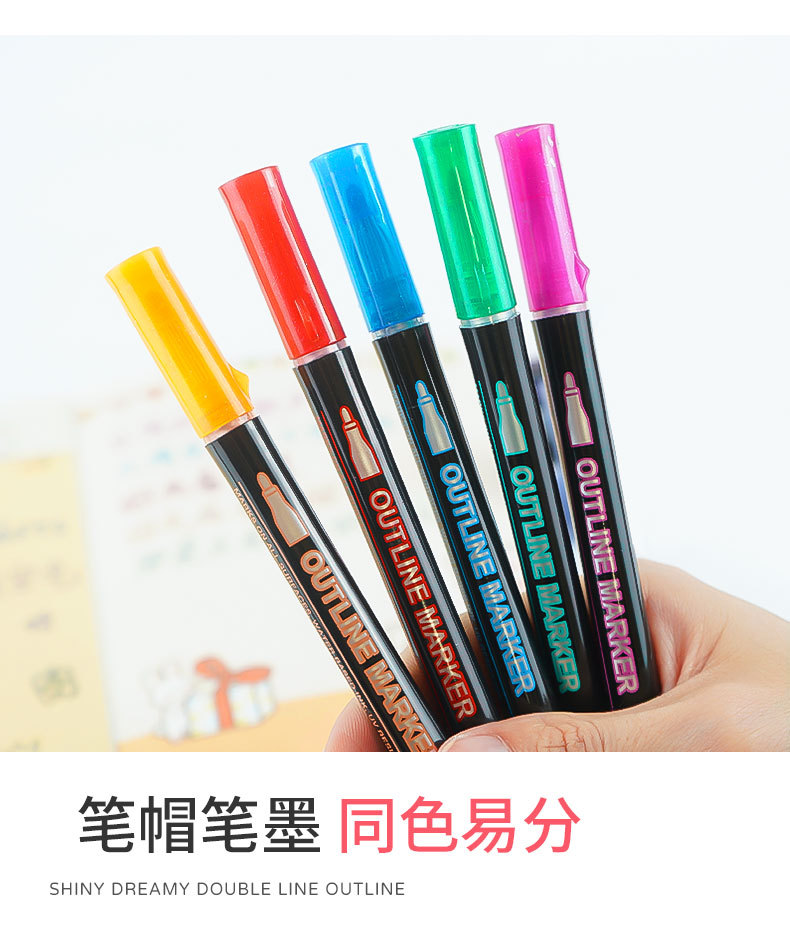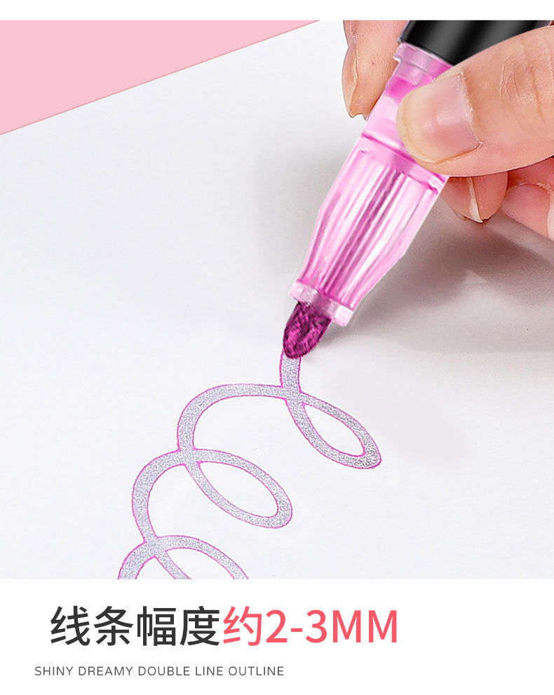 双线轮廓笔DIY手账笔圣诞贺卡闪光笔手抄报荧光笔彩色金属标记笔