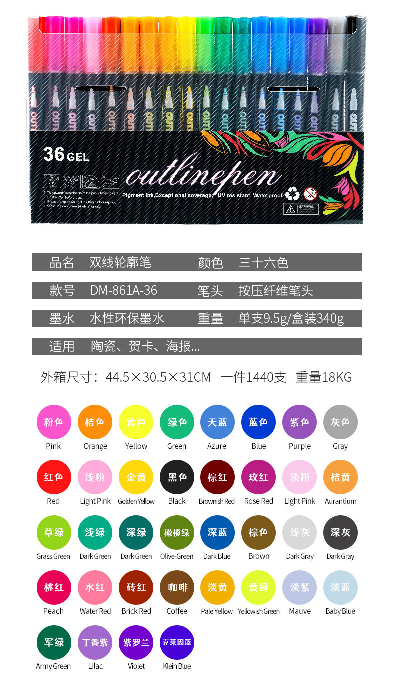 国境を越えて爆発した夢の二重線輪郭ペン36色セットDIY手帳カラークリスマス金属二色蛍光ペン