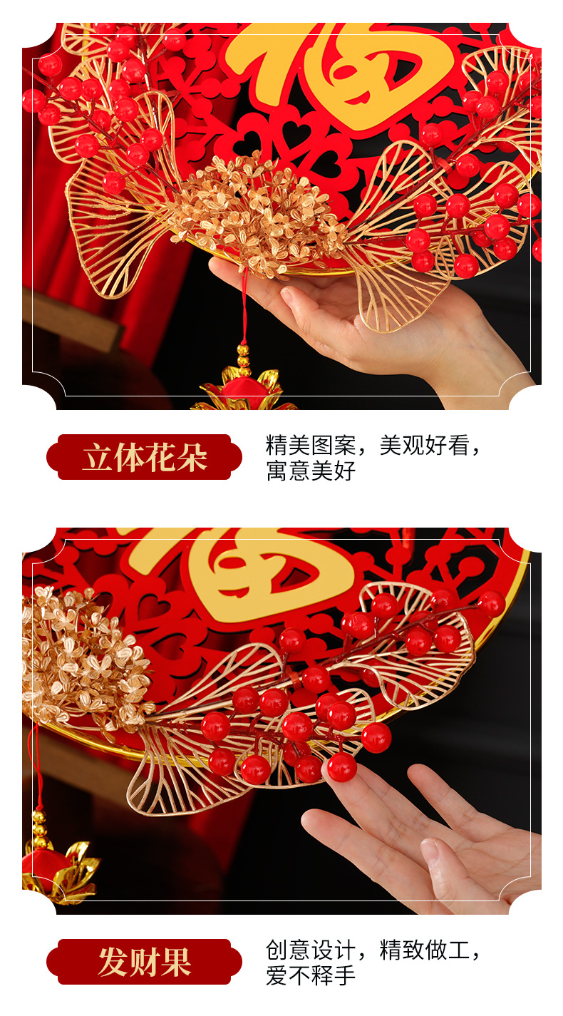 新年のハイエンドの福の字のペンダントの2023ウサギの年の春節の立体の中国は赤い果樹のイチョウの葉のお祝いの装飾品を結びます。
