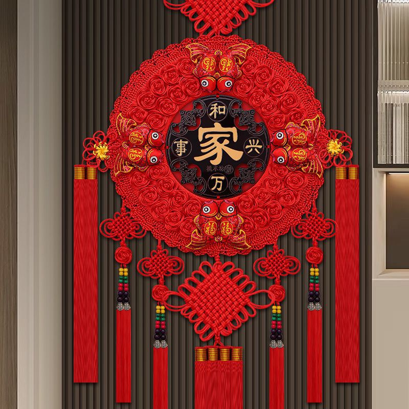 中国結びの「福」の文字の飾り、リビングルーム用大型、新年、高級吊り下げ飾り、玄関、入り口、馬年、春節の装飾