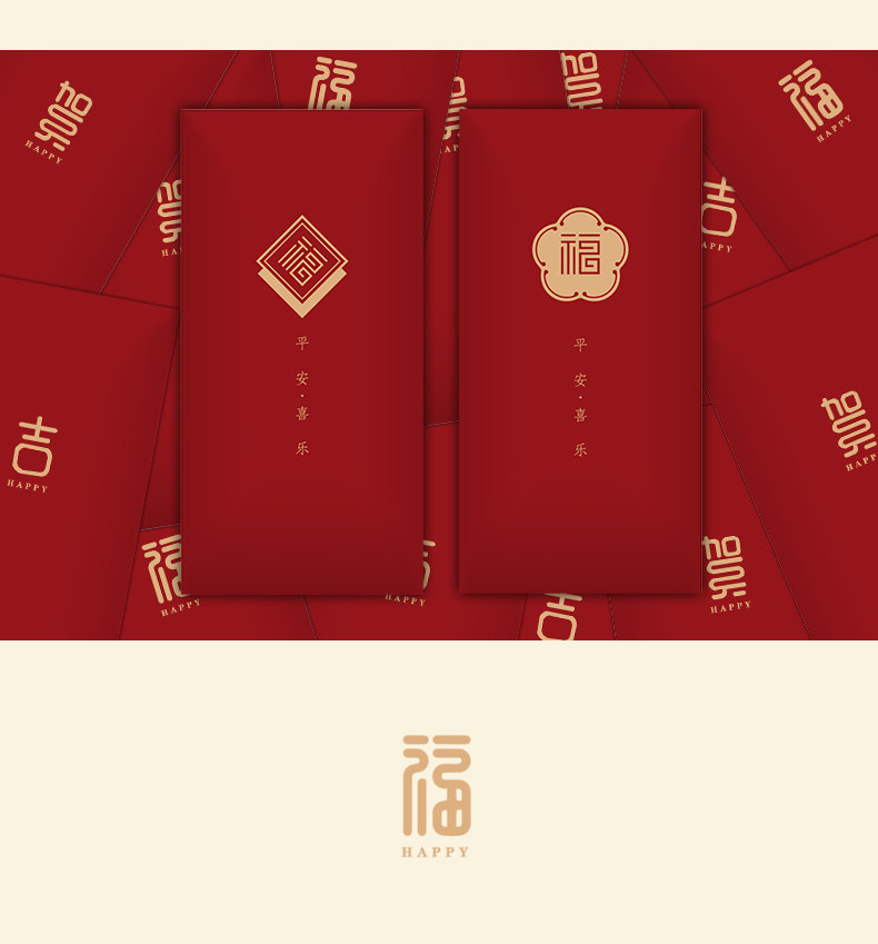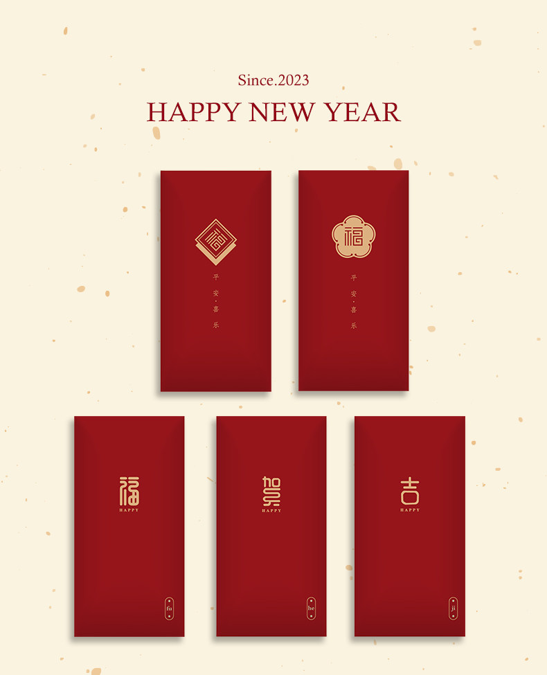 カラー 吉祥枠福紅包-長型,Happy福紅包-ロングタイプ,Happy賀紅包-ロングタイプ,Happy吉紅包-ロングタイプ
