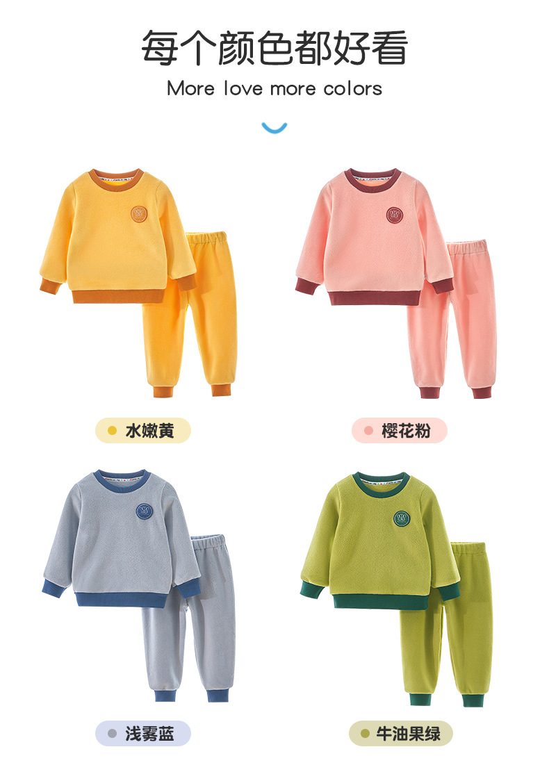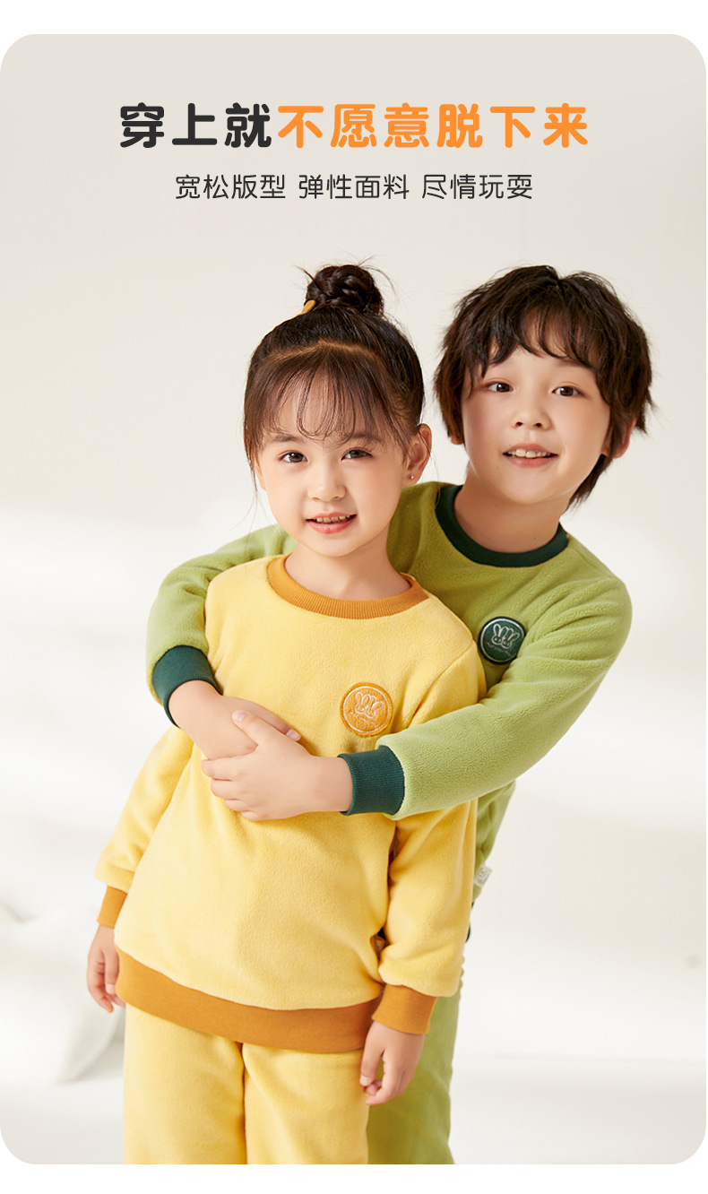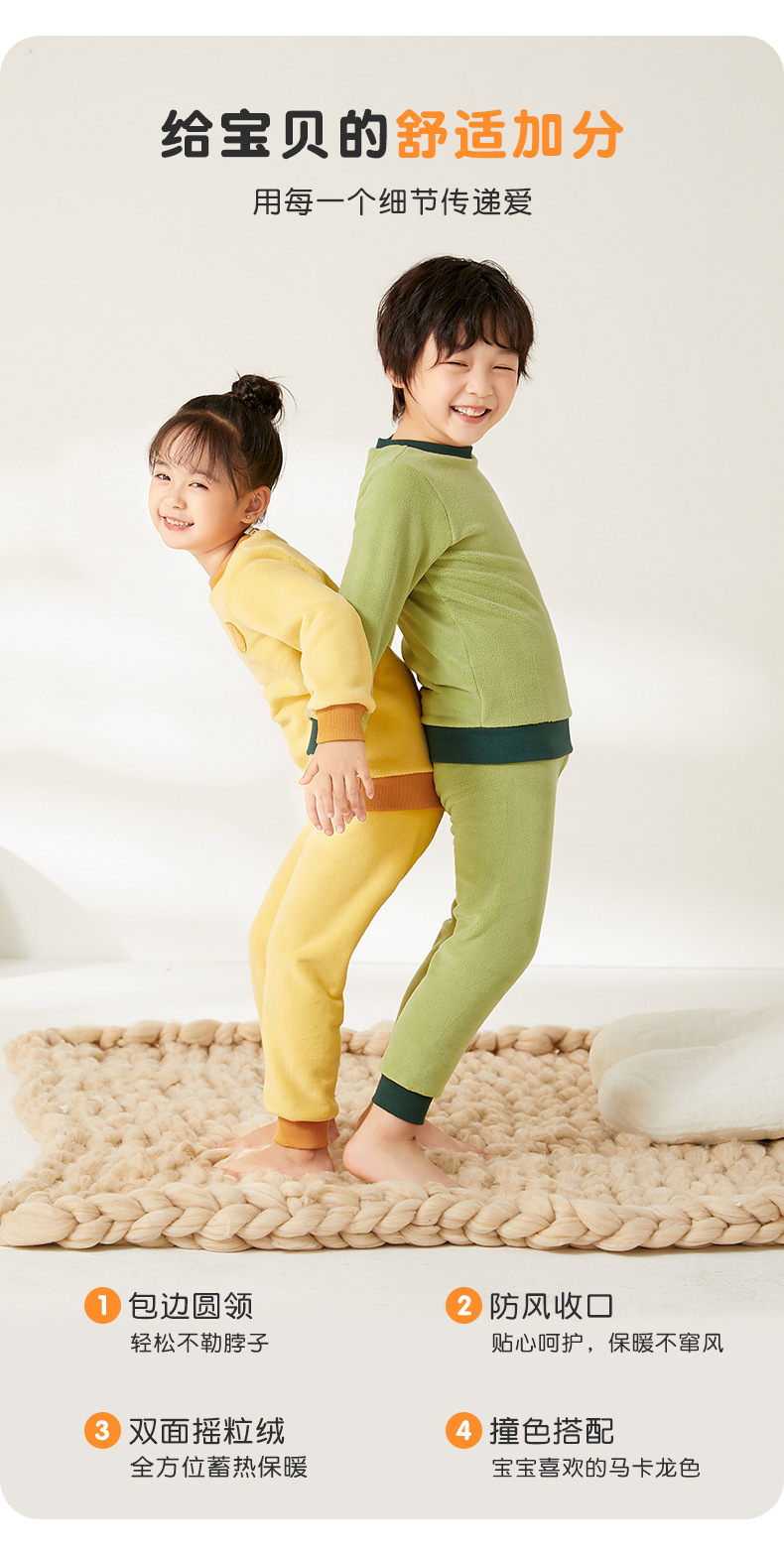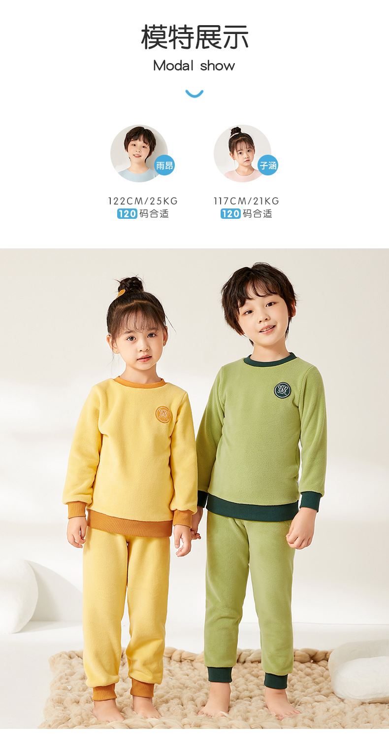 上宝麦児童両面徳絨秋衣秋ズボンセット中高襟中小童保温パジャマ男女児童下着