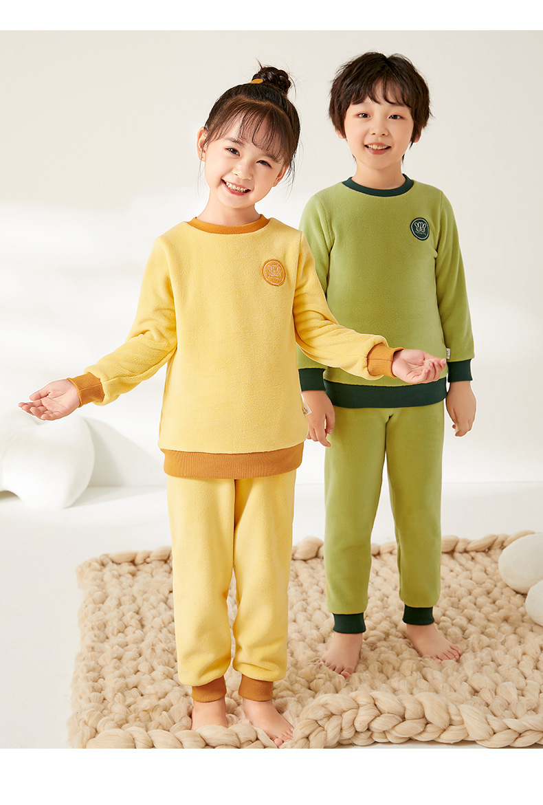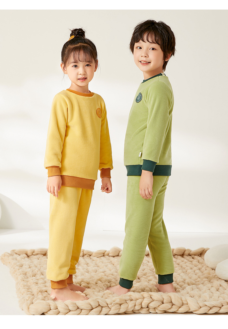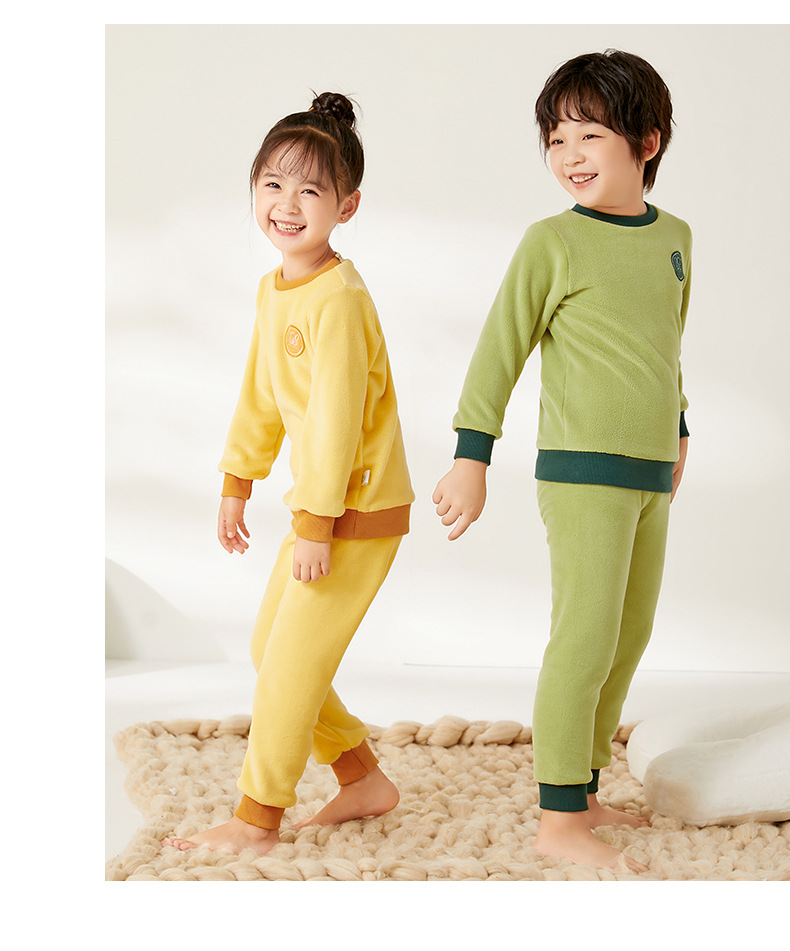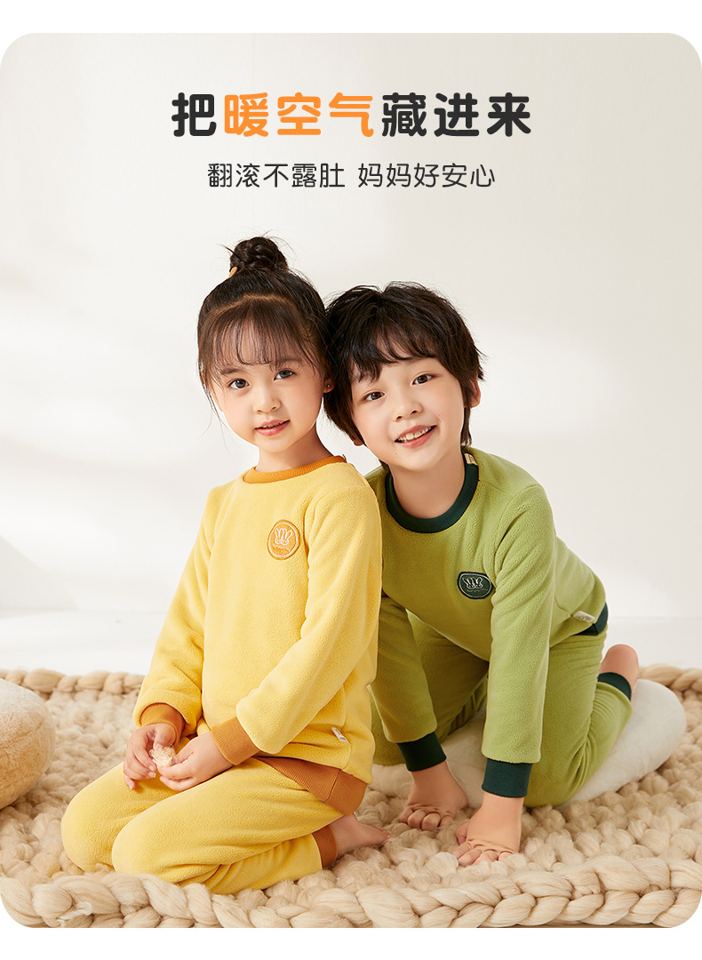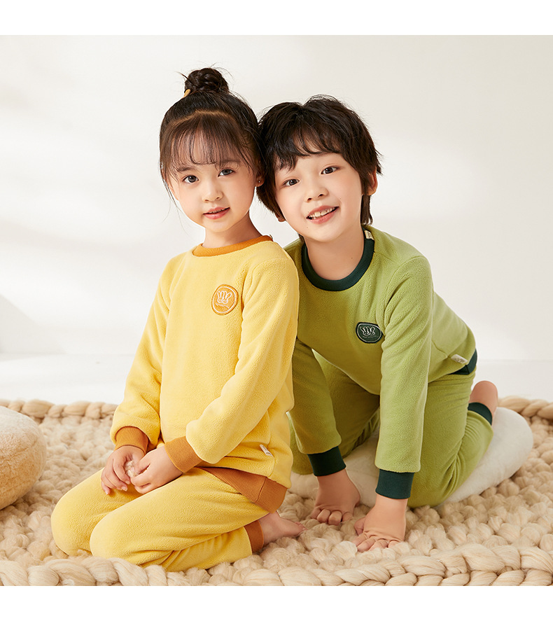 上宝麦児童両面徳絨秋衣秋ズボンセット中高襟中小童保温パジャマ男女児童下着