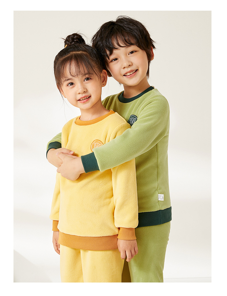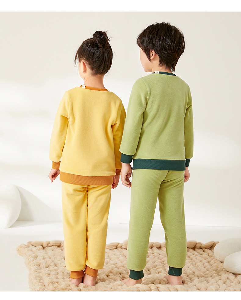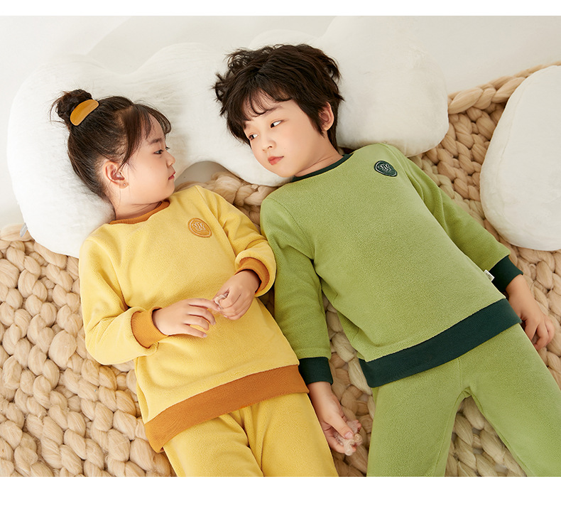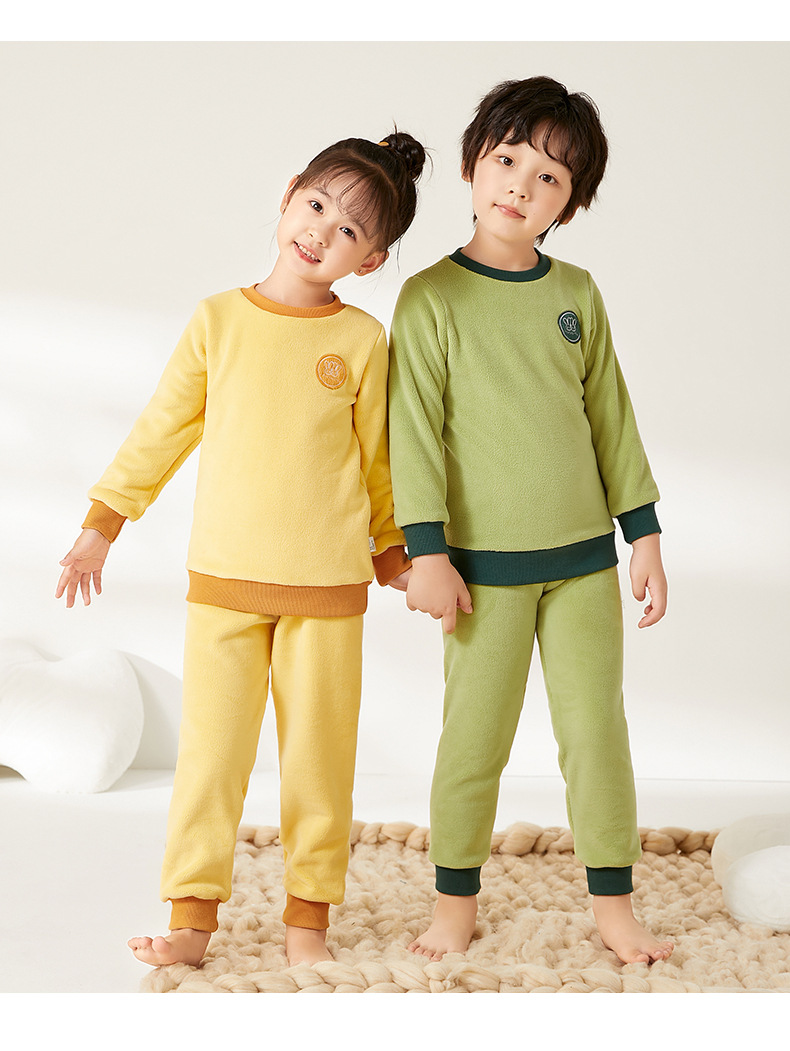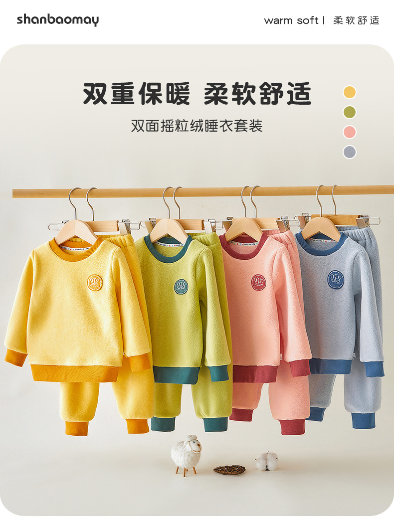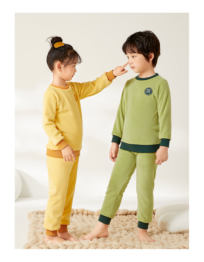 上宝麦児童両面徳絨秋衣秋ズボンセット中高襟中小童保温パジャマ男女児童下着