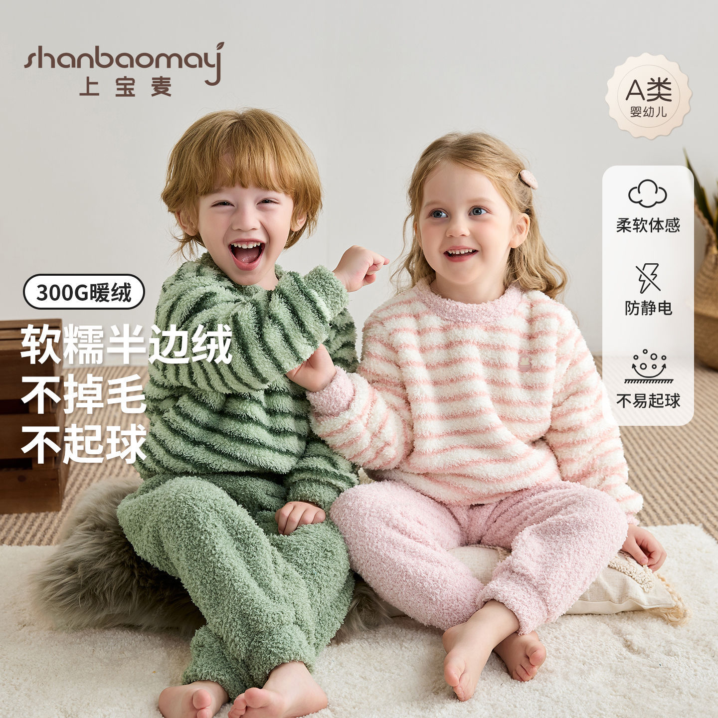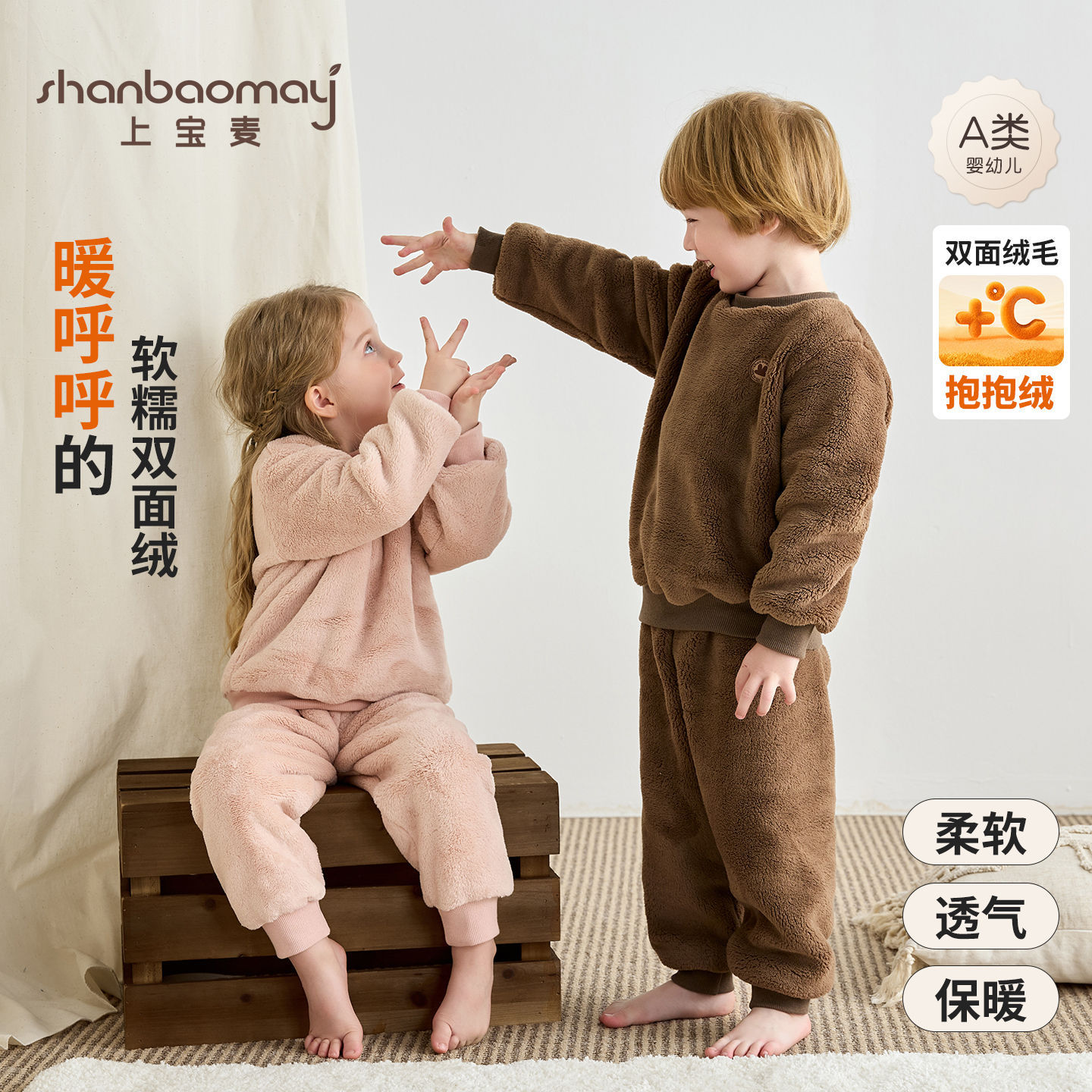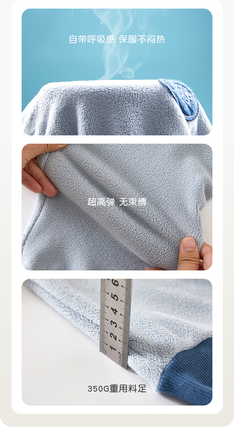 上宝麦秋冬抱抱绒保暖蓄热儿童睡衣套装加绒家居服加厚宝宝男女童