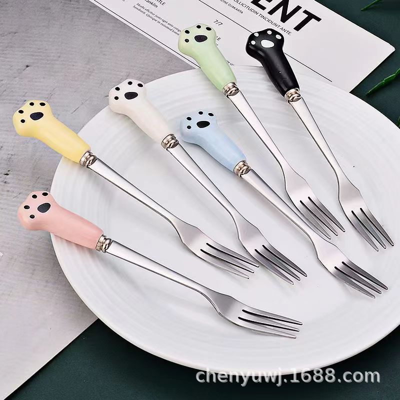 ステンレスネットの赤い果物のフォークの明るい果物の品は丸い穴のフォークのホテルのサラダの小さいフォークの家庭用のハイエンドのデザートのフォークに署名します。