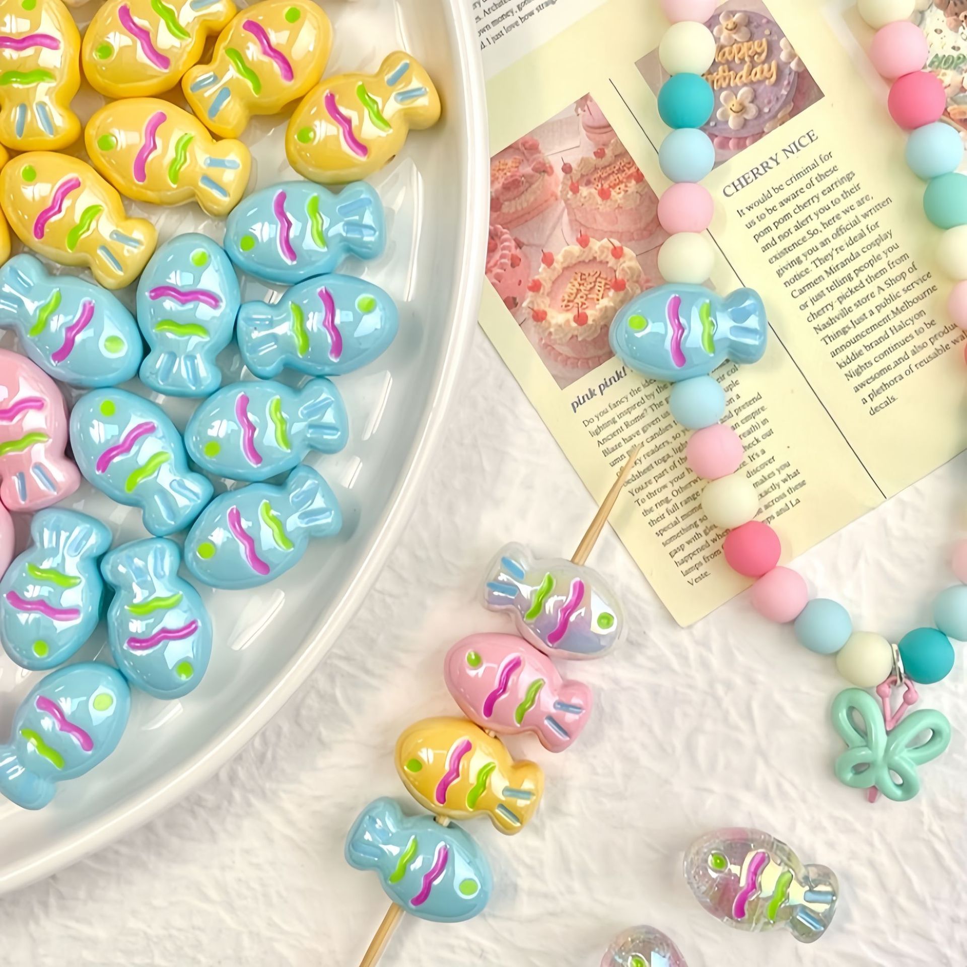 かわいい手描きのカラフルな小さな魚のアクリルビーズのアクセサリー