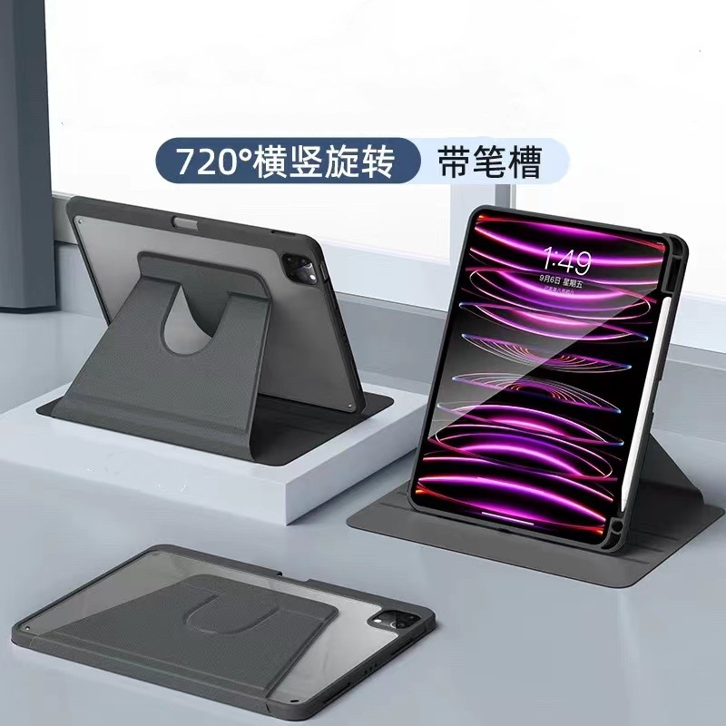 适用ipad11保护套360旋转air5亚克力pro11带笔槽10. 9平板10.2壳8