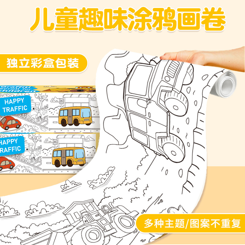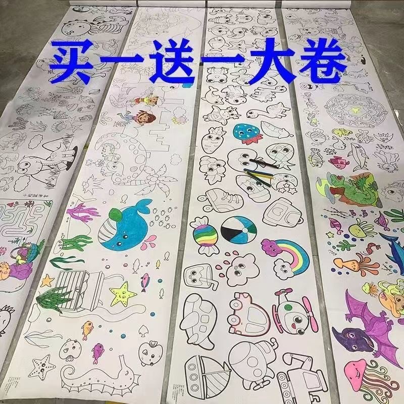 子供の絵巻落書きキャンバス子供の絵画空白の長い絵巻幼稚園の学校の塗り絵の塗り絵の塗り絵の絵巻