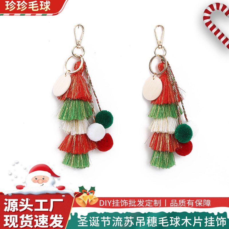 跨境新款圣诞节伴手礼挂饰礼品盒礼袋流苏吊穗挂件毛球木片装饰