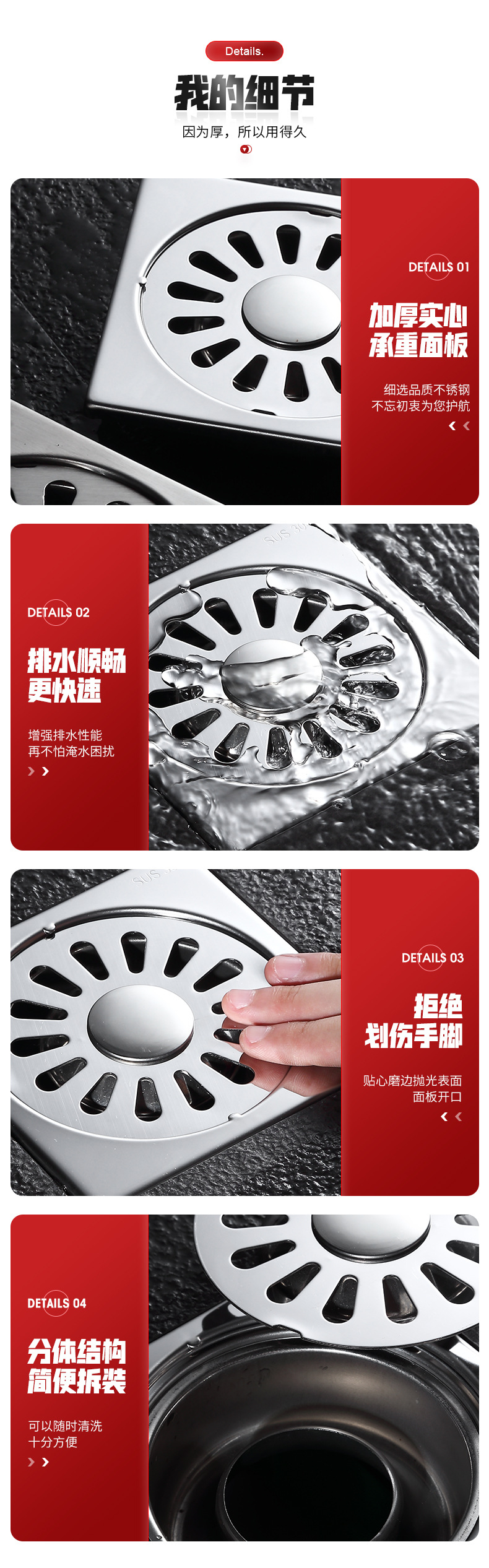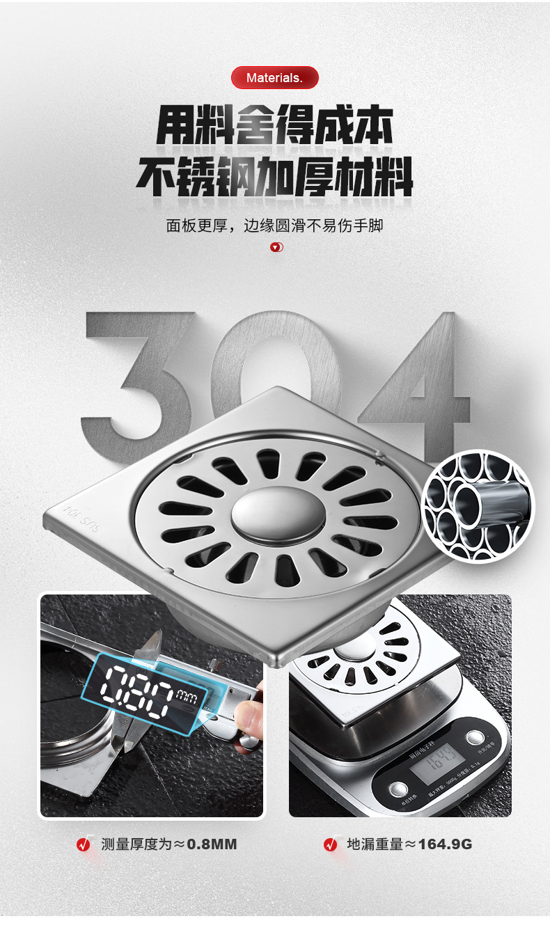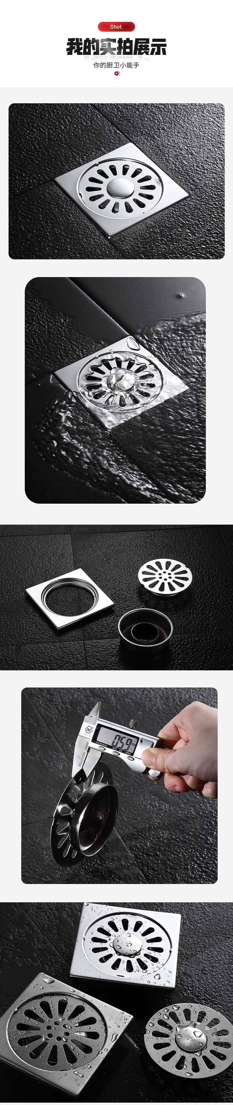 防臭304不锈钢地漏阳台卫生间厨房下水管淋浴房洗衣机工程款加厚