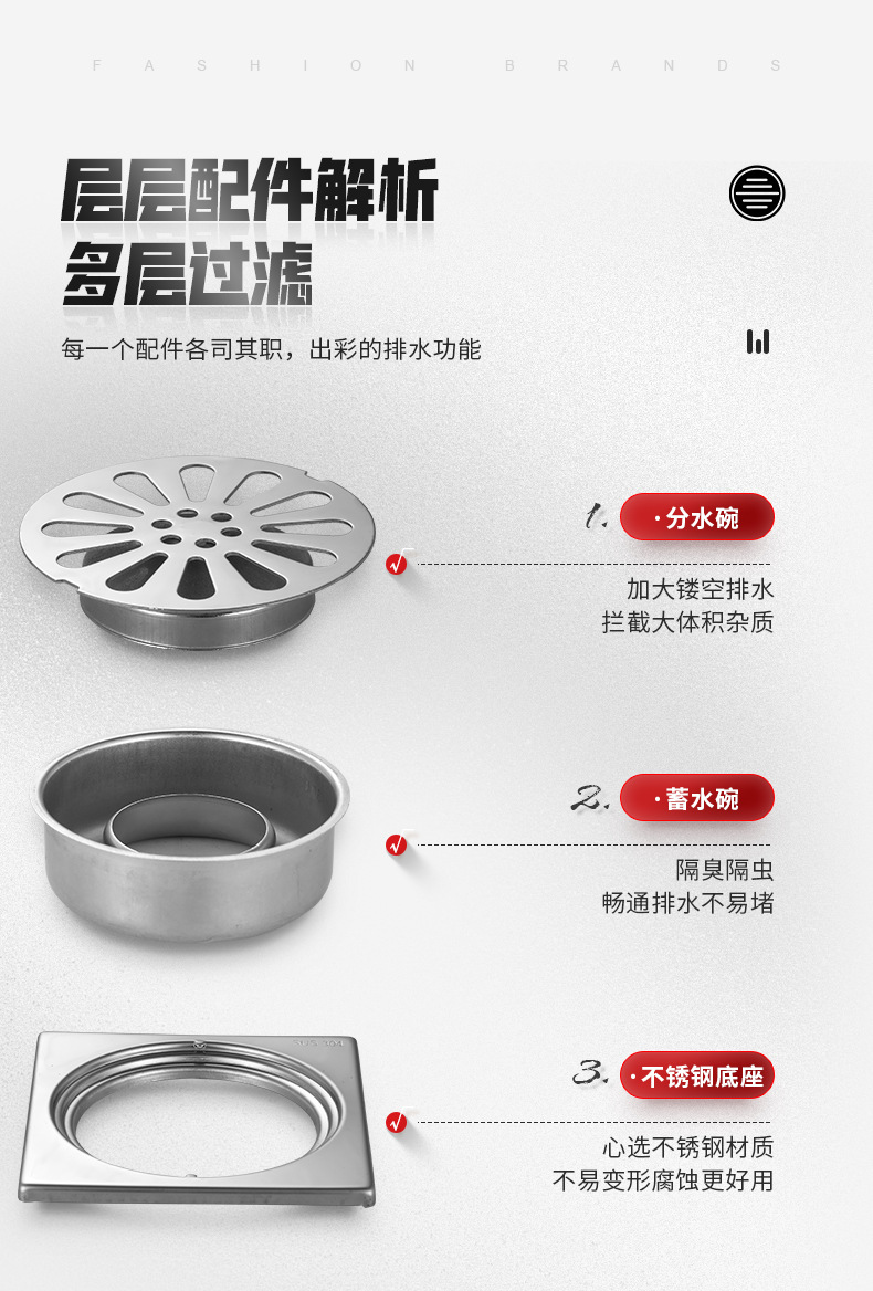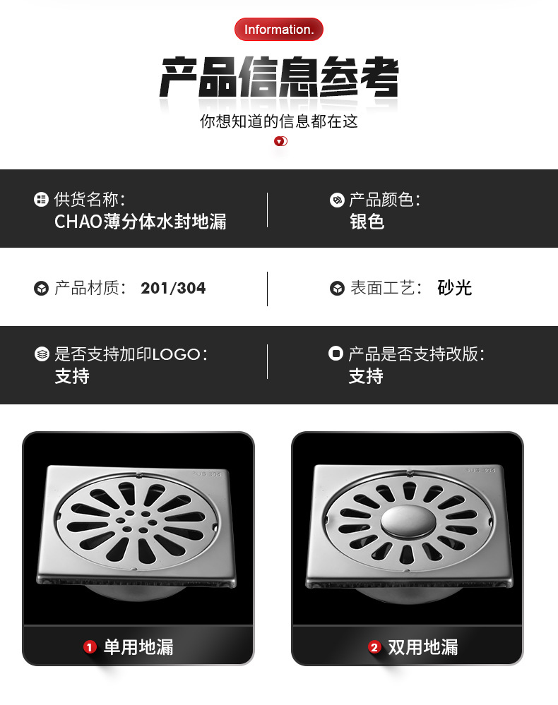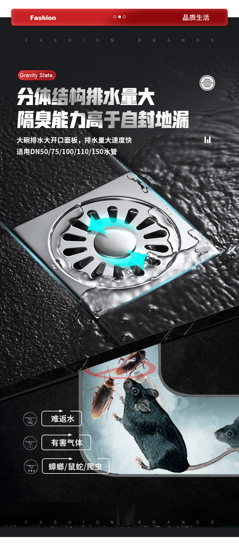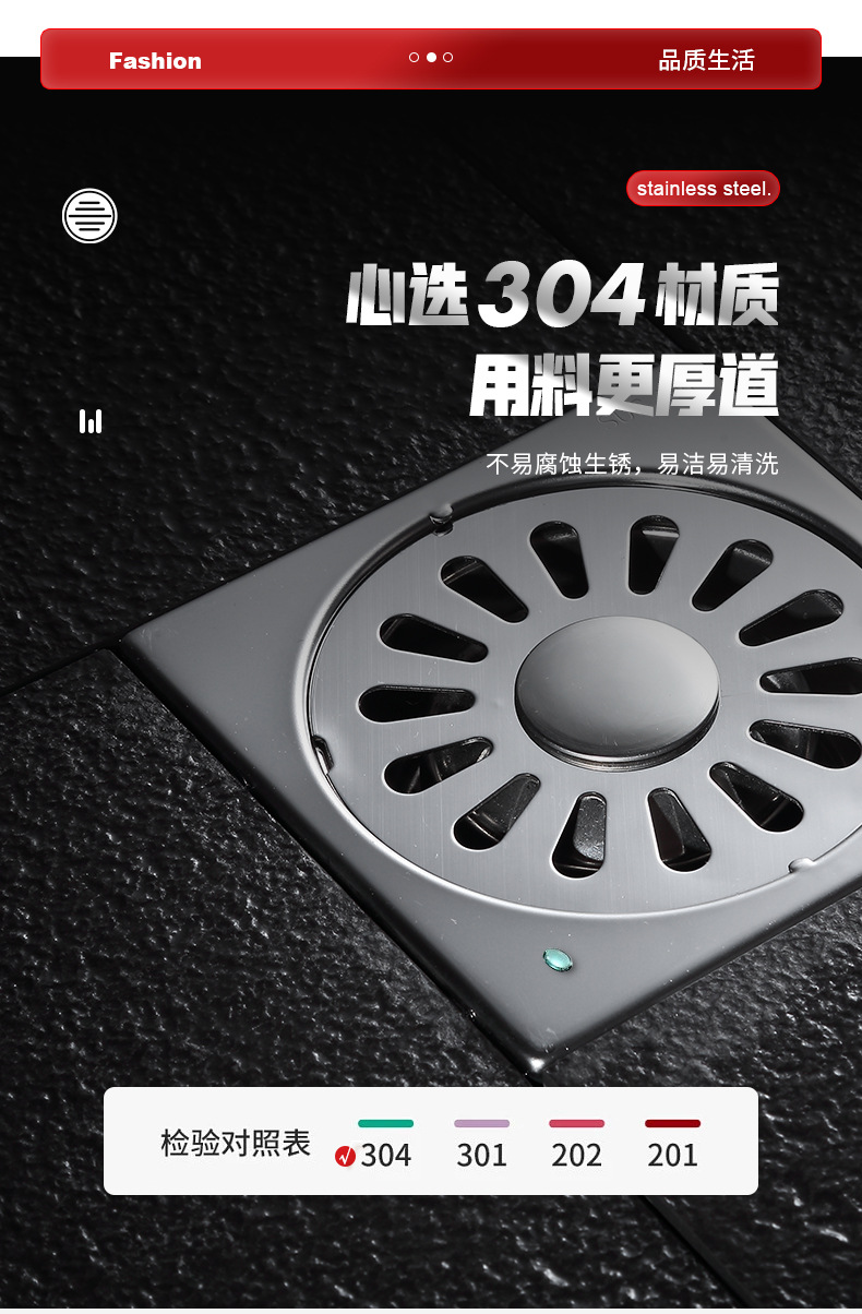 防臭304不锈钢地漏阳台卫生间厨房下水管淋浴房洗衣机工程款加厚
