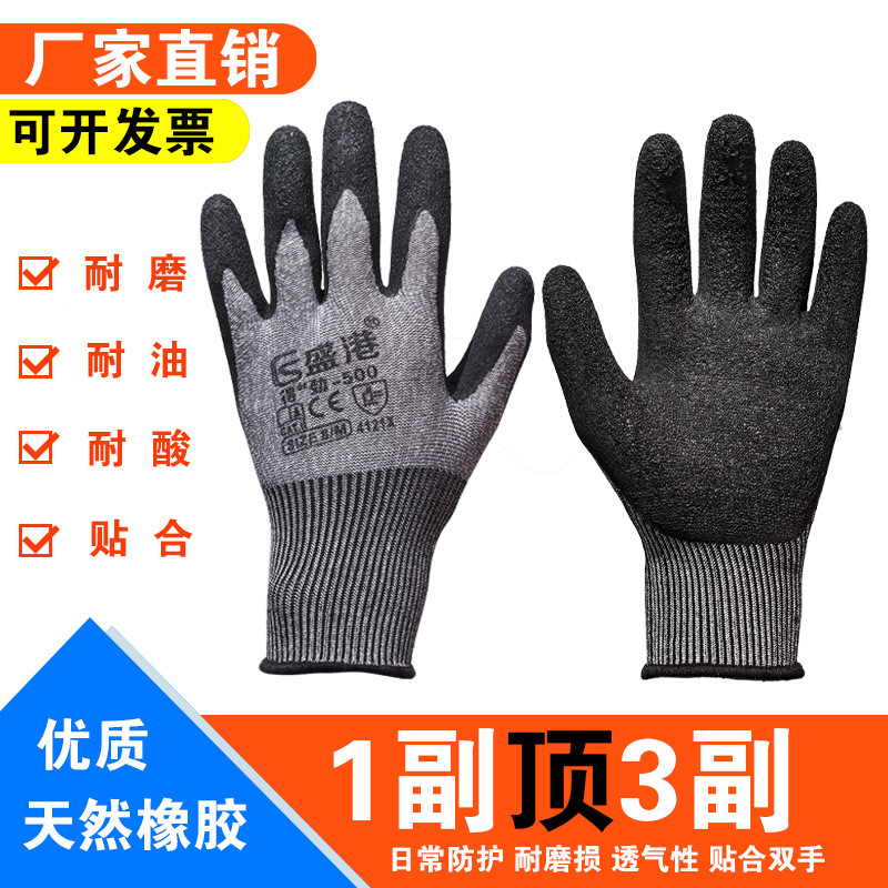 全掌シワ労働保護手袋ゴム耐摩耗性耐油ゴム滑り止め厚綿線ゴム労働保護手袋