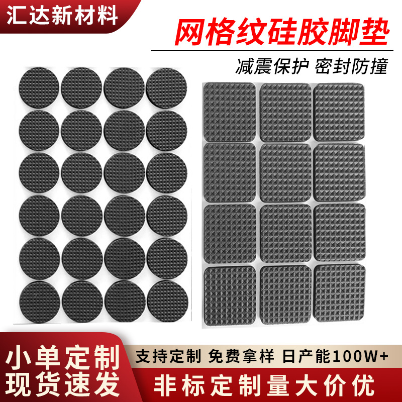 跨境热销网格纹硅胶胶垫自粘防滑减震垫片家具桌椅静音背胶硅胶脚