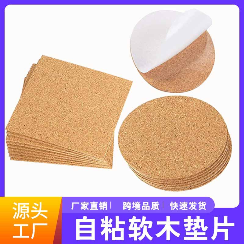 クロスボーダー正方形コルクパッド自己粘着バックゴム円形セラミック工芸品断熱コルクコースター