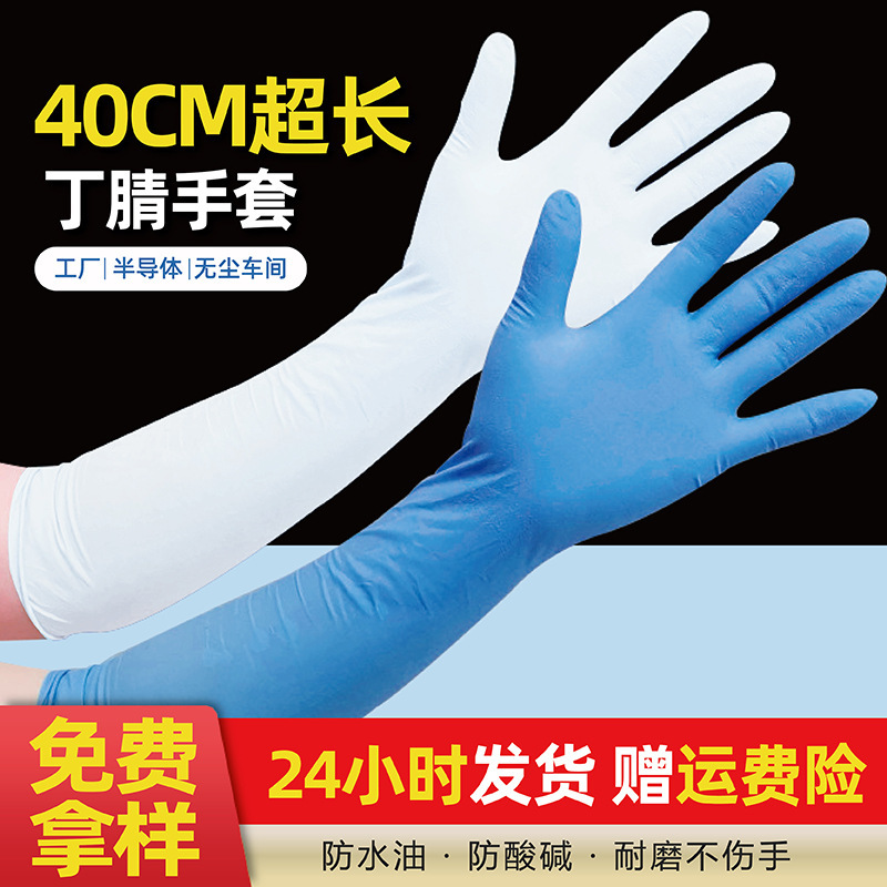 延長ニトリルゴム手袋38センチ千級浄化実験室工場は工業級使い捨て丁晴手袋を使用している