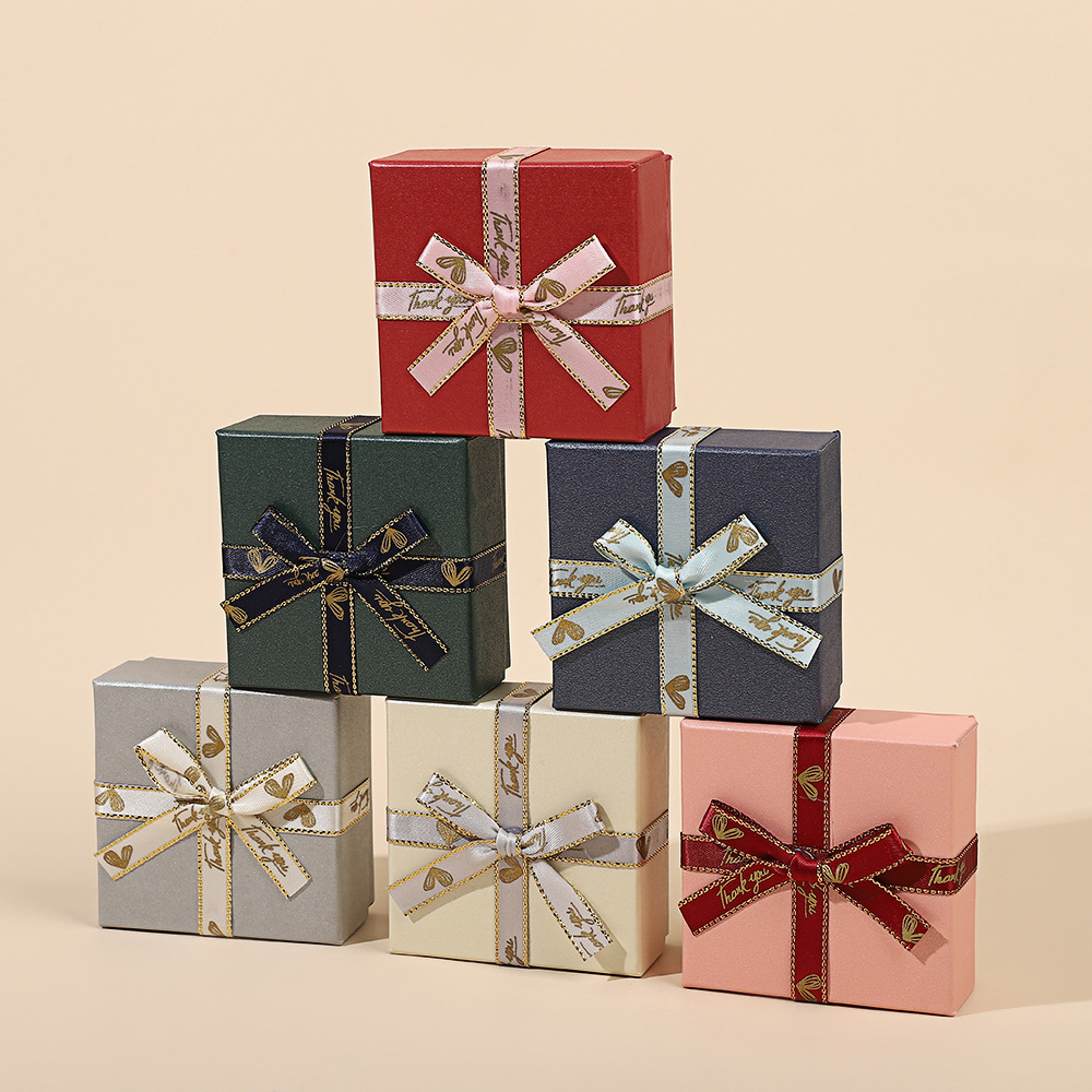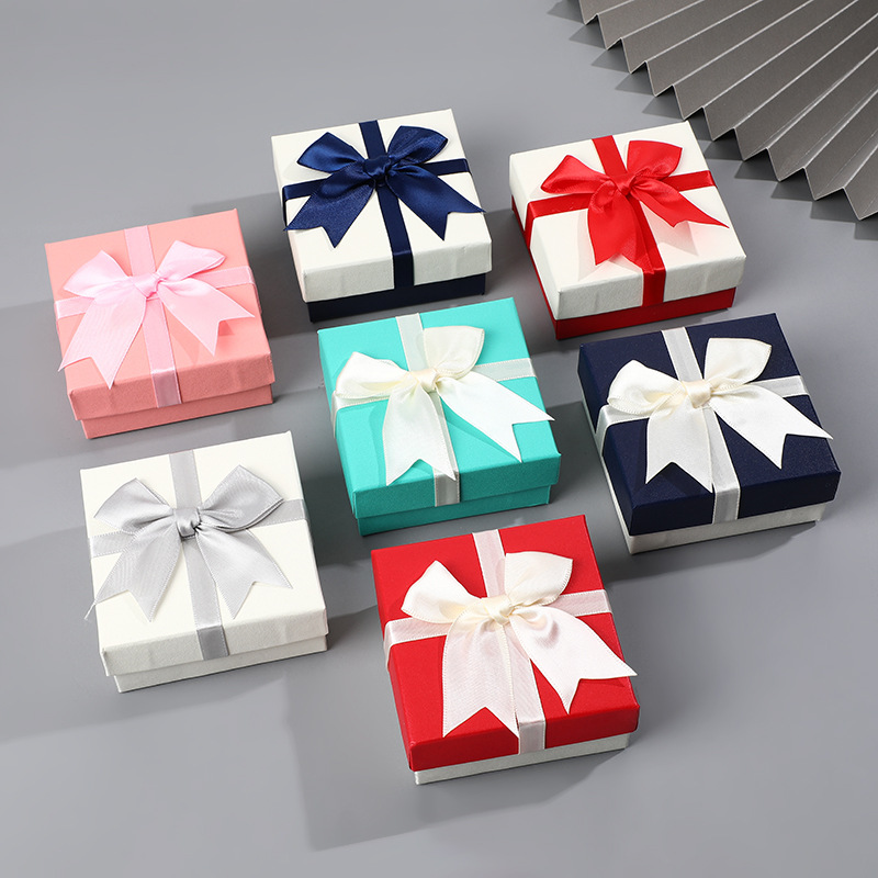 正方形蝶結びギフトボックスバレンタインギフトボックスビジネスギフトアクセサリーボックスリングピアスリボンボックス