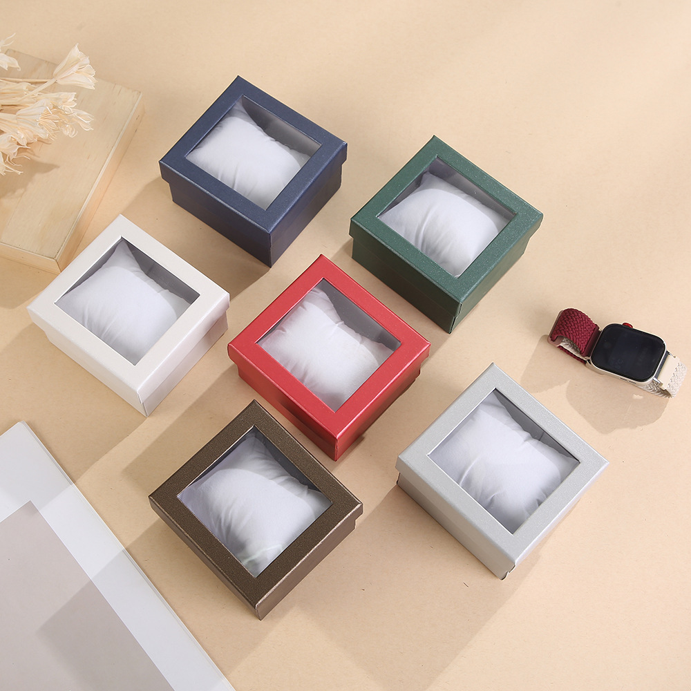 透明开窗手表盒纸盒礼品盒简约单色手表包装盒饰品收纳盒批发
