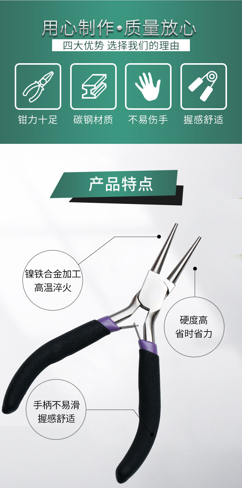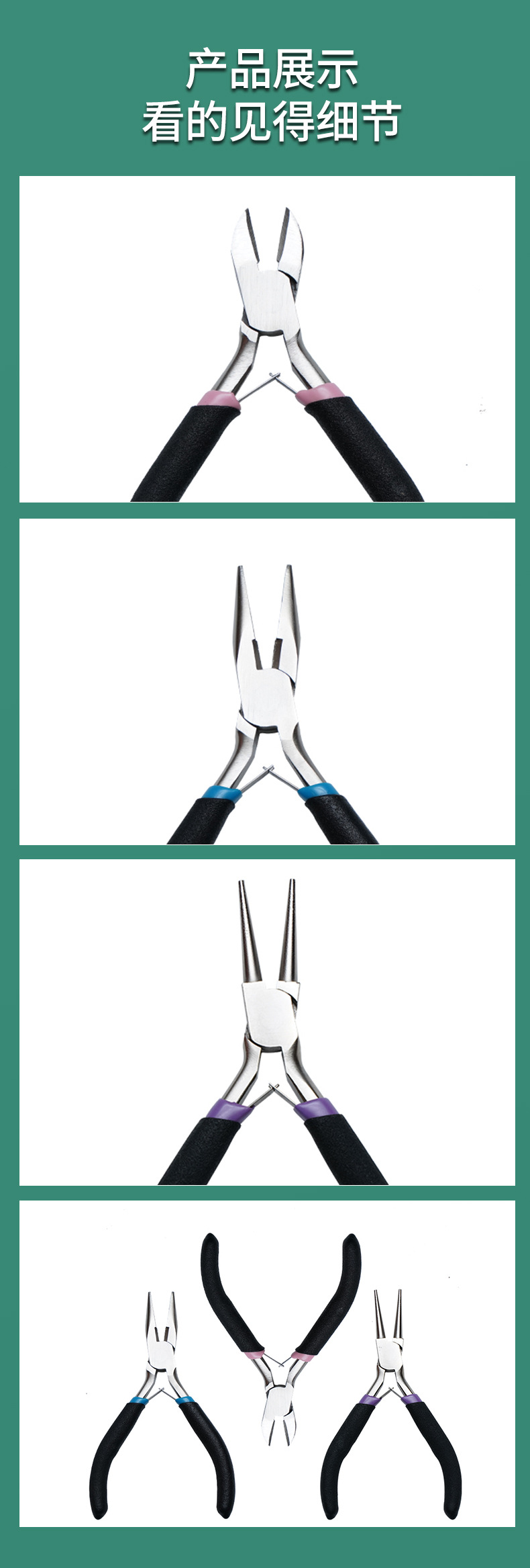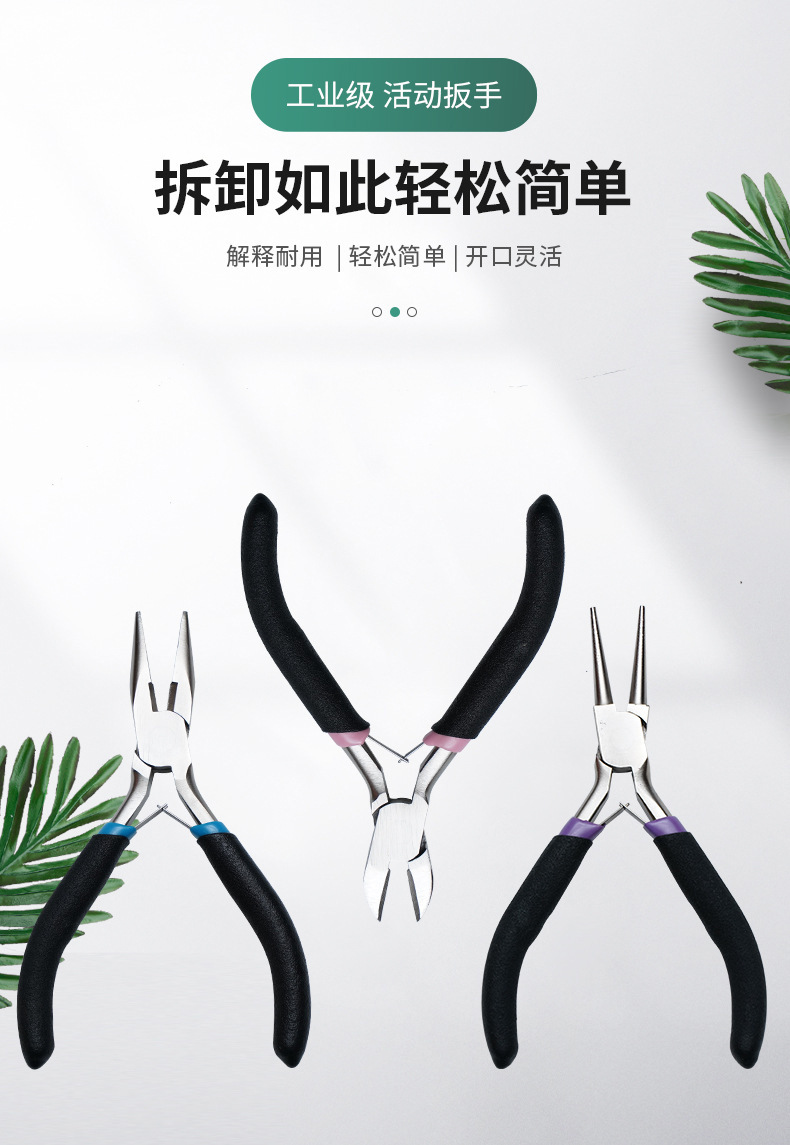 メーカーは宝石鉗子ニッケル鉄の2色3点セットの斜口鉗子の口鉗子ミニ鉗子diy手作りアクセサリー鉗子を提供している