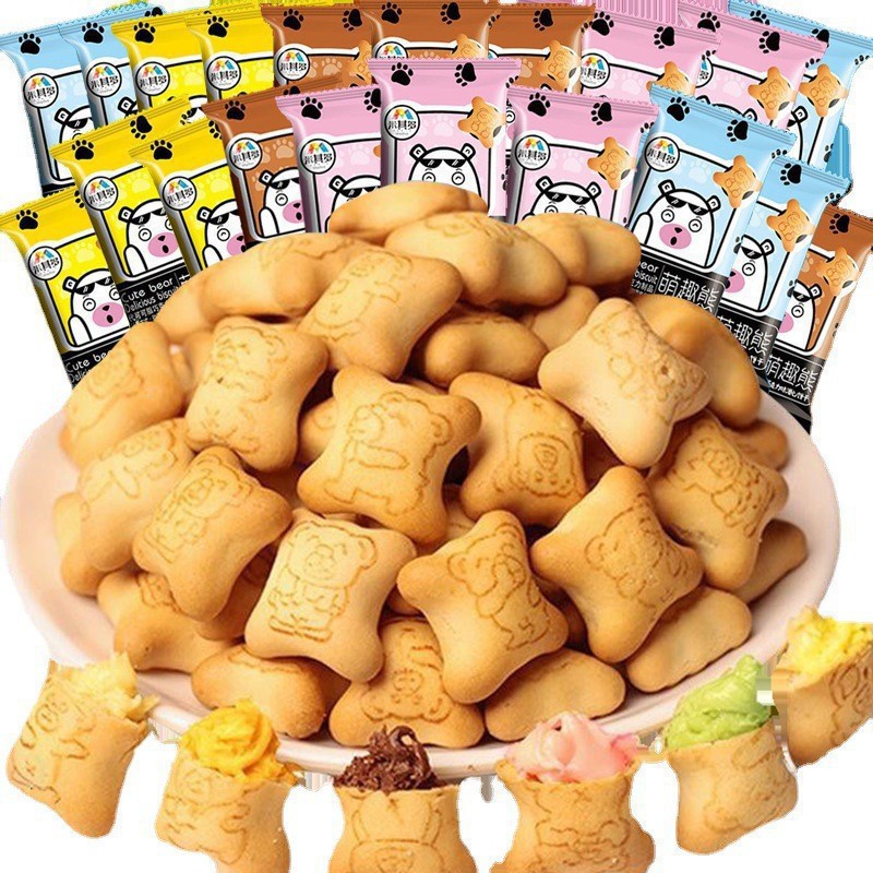 熊注心ビスケット独立小包装子供代食スナック朝食菓子サンドイッチビスケット箱卸売り