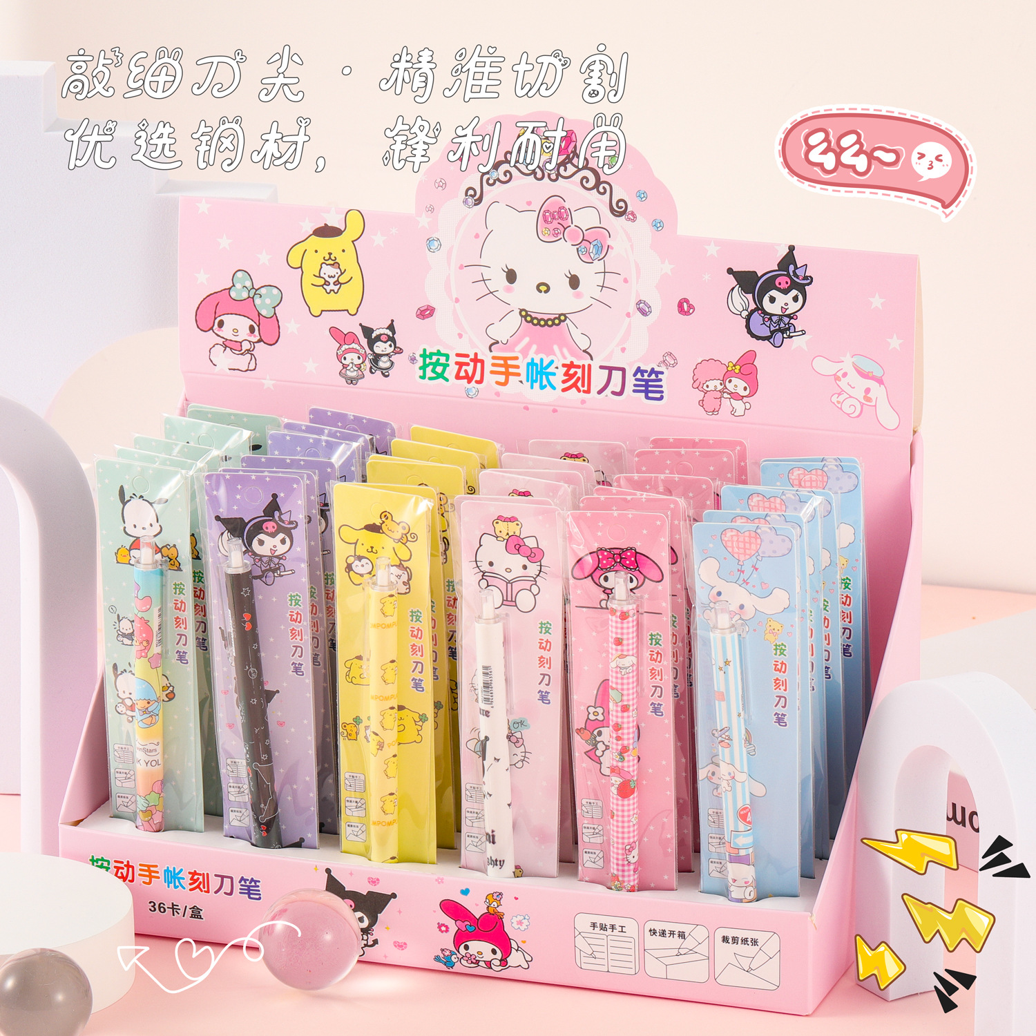箱に入っているサンリオは、彫刻刀のペンを押して、美しい顔をしています。