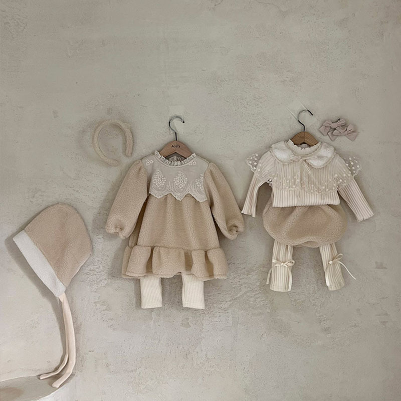 韓国版ins子供服秋冬の女の子の赤ちゃんの厚い綿レースの襟の赤ちゃんの底の上着の子供のファッションのtシャツ