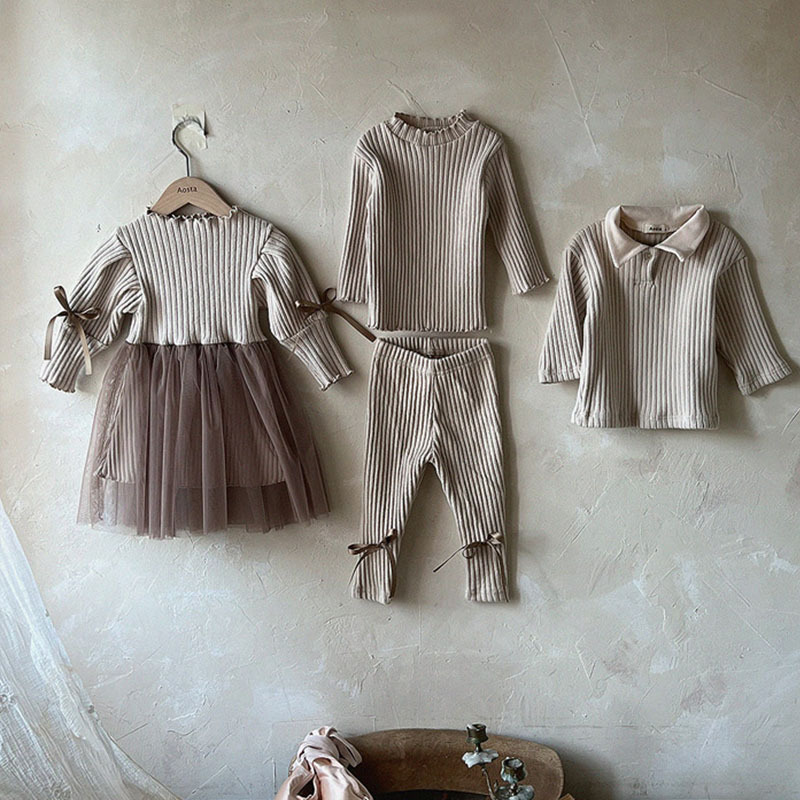 韓国版ins子供服坑条襟長袖tシャツ