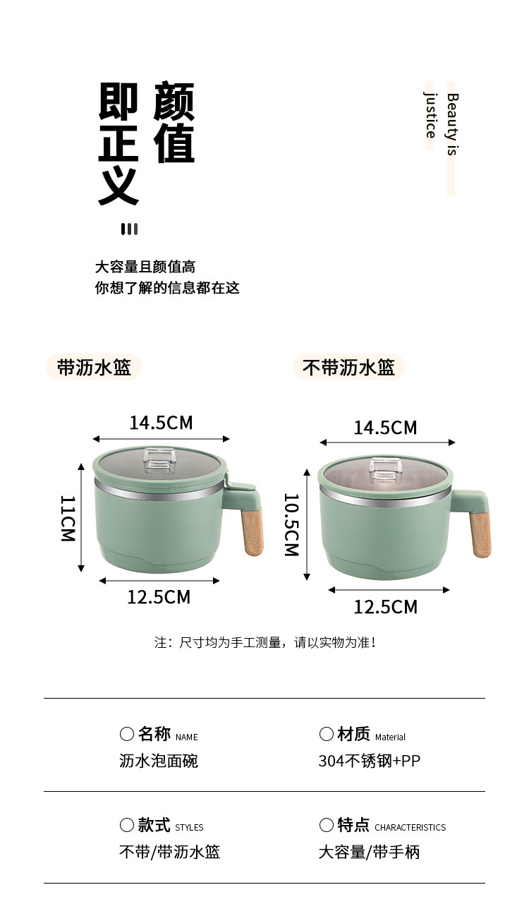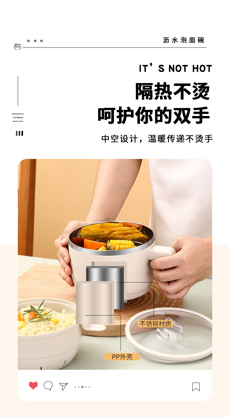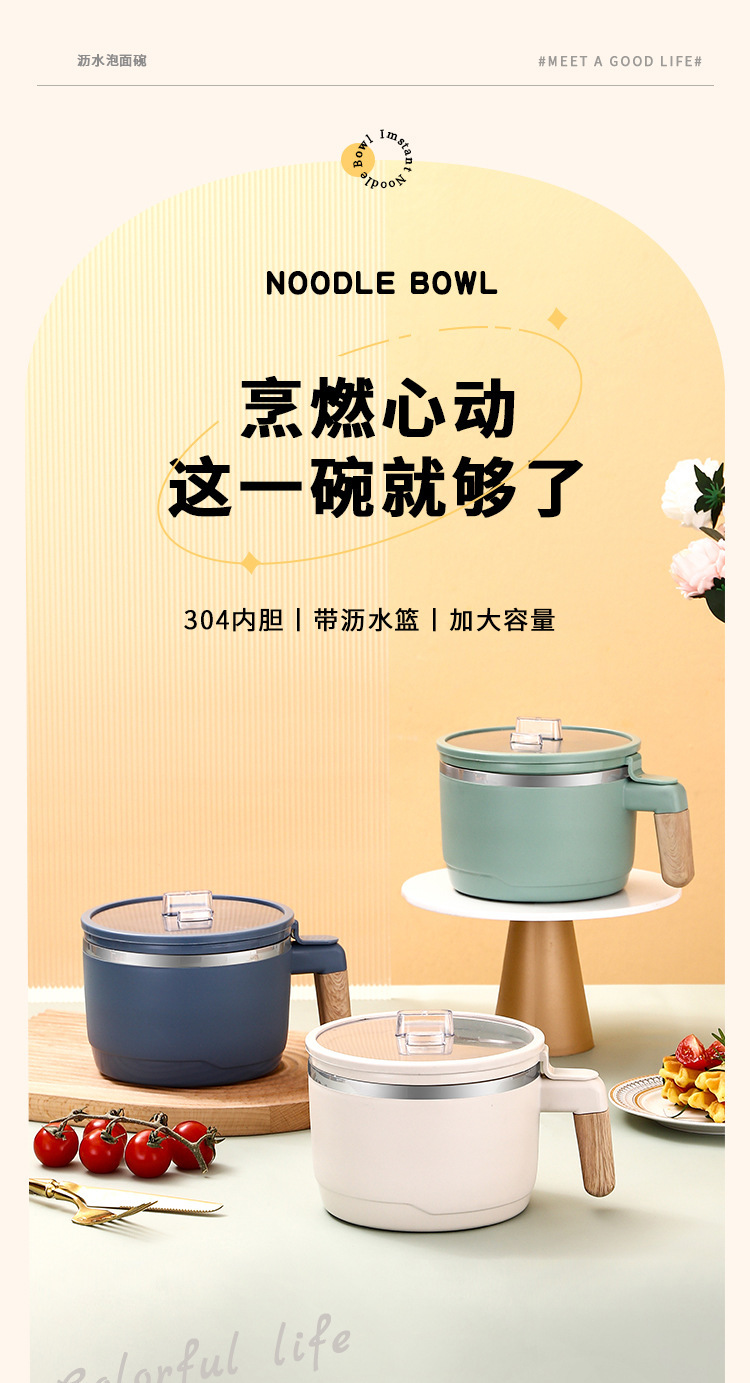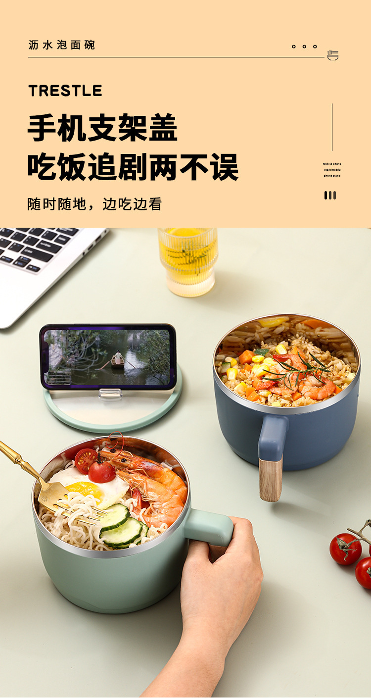 304ステンレスインスタントラーメン碗蓋付き学生寮パーマ防止スープカップ大容量弁当箱ファーストフードカップ