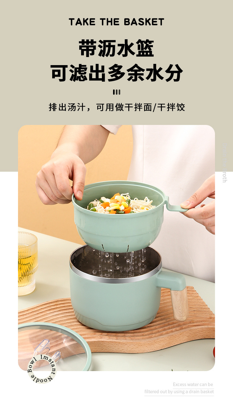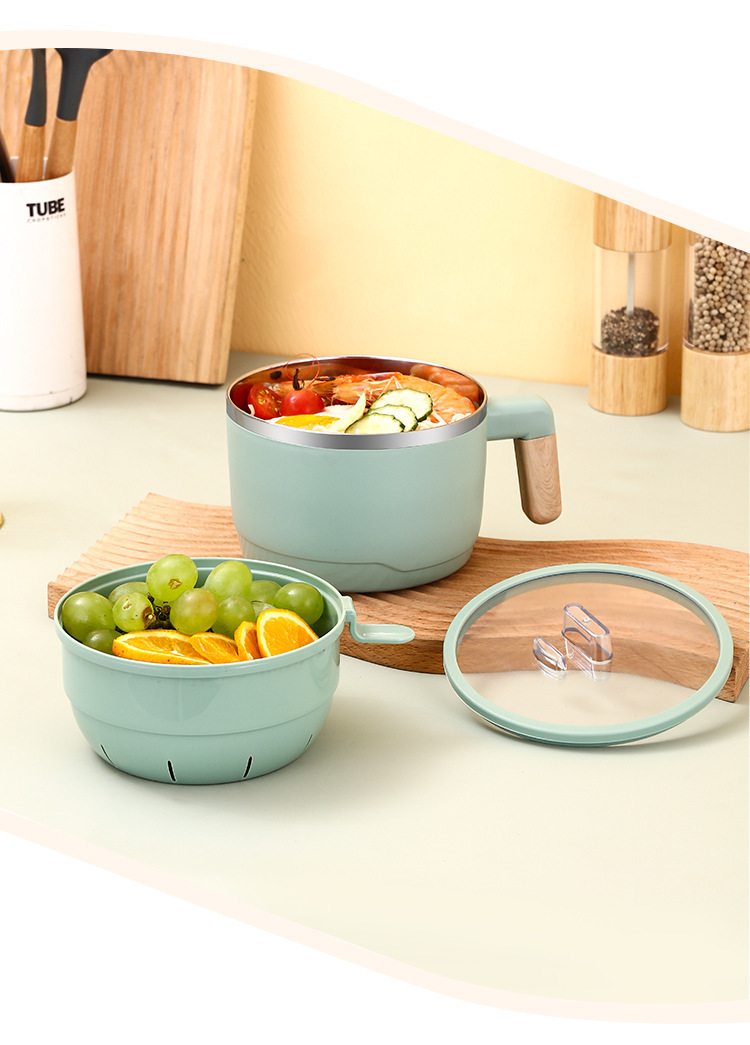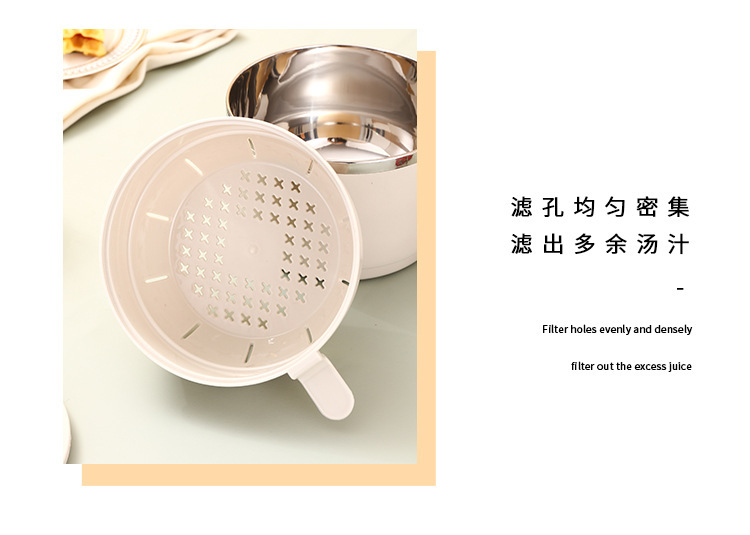 多機能304ステンレス製フルーツ水切りかご、透明密閉蓋付き、二層構造で火傷防止、学生寮用インスタントラーメンボウル