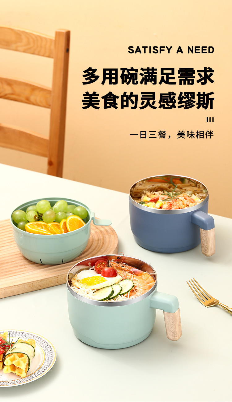 工場直販 寮用携帯ステンレス製麺鉢弁当箱 304ステンレス製インスタントラーメン鉢 ギフト卸売