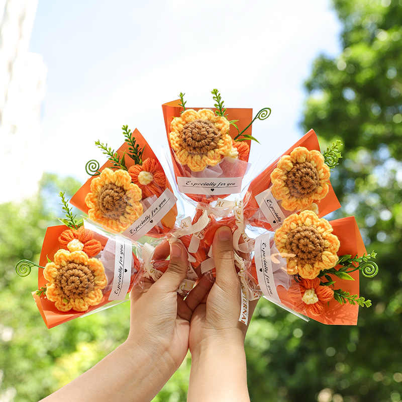 ニット糸のパフブーケ、造花、シミュレーションフラワー、ひまわり、多用途ギフト、ミニブーケ
