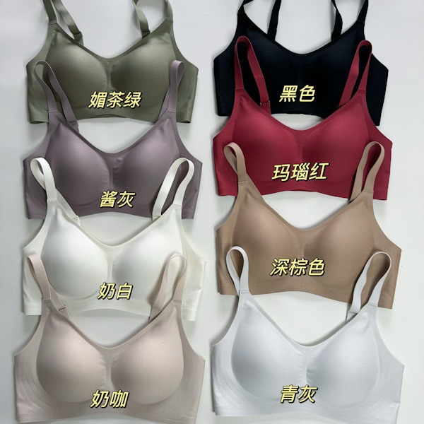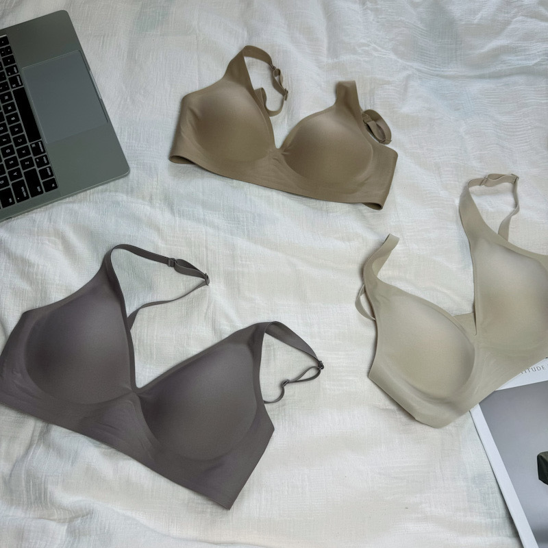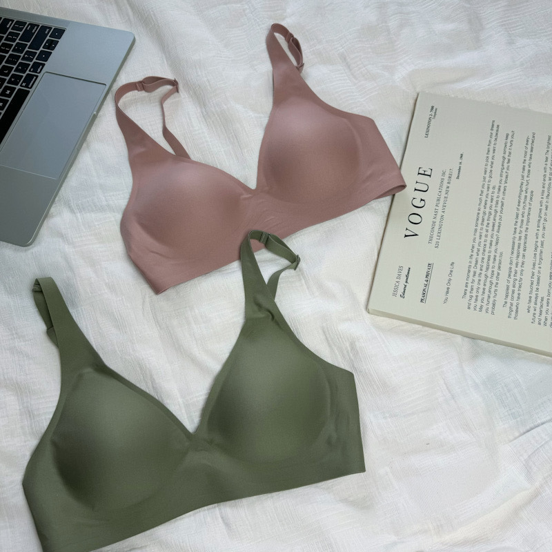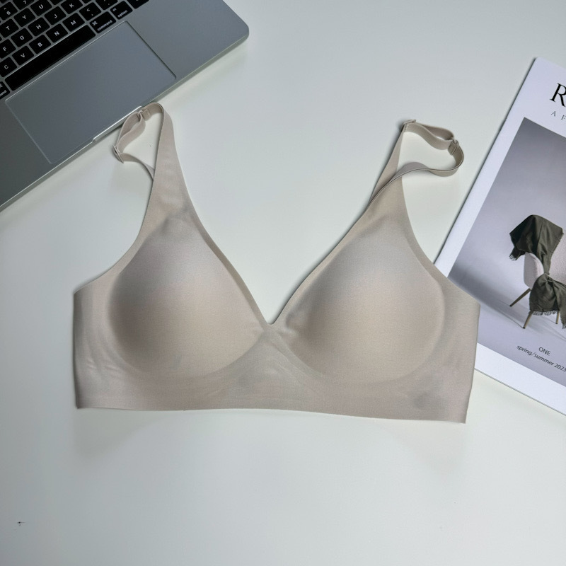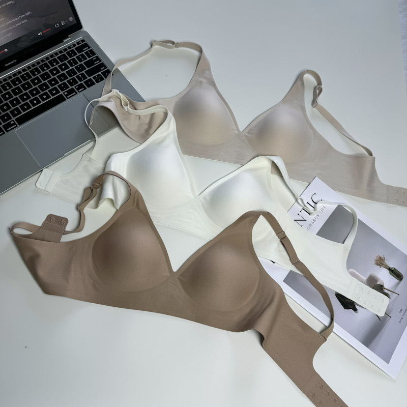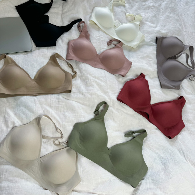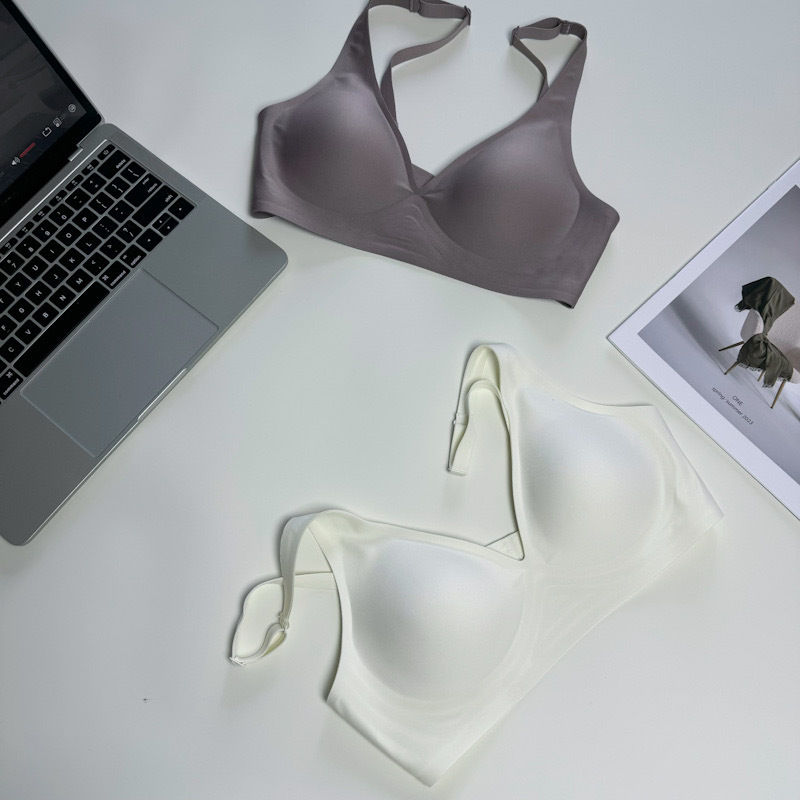 ゼリーラインのシームレスブラ、薄型、小胸用、寄せ上げ効果、目に見えないフィット感、ブラ工場、女性用ノンワイヤーブラ、卸売