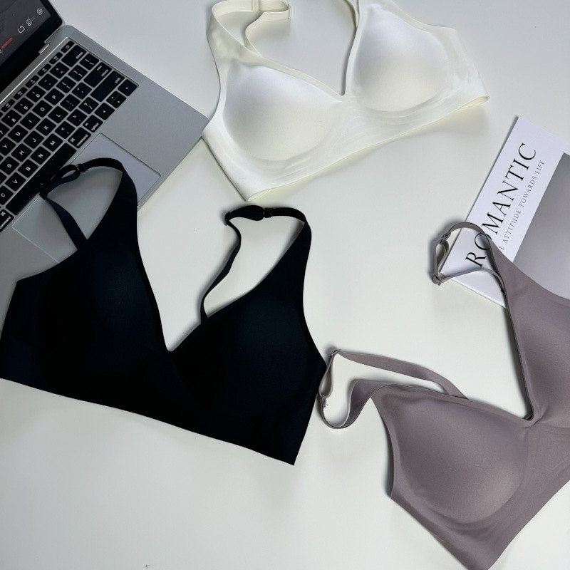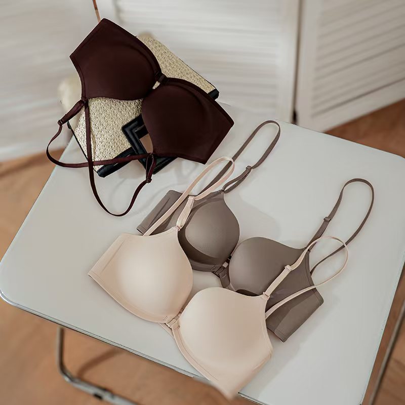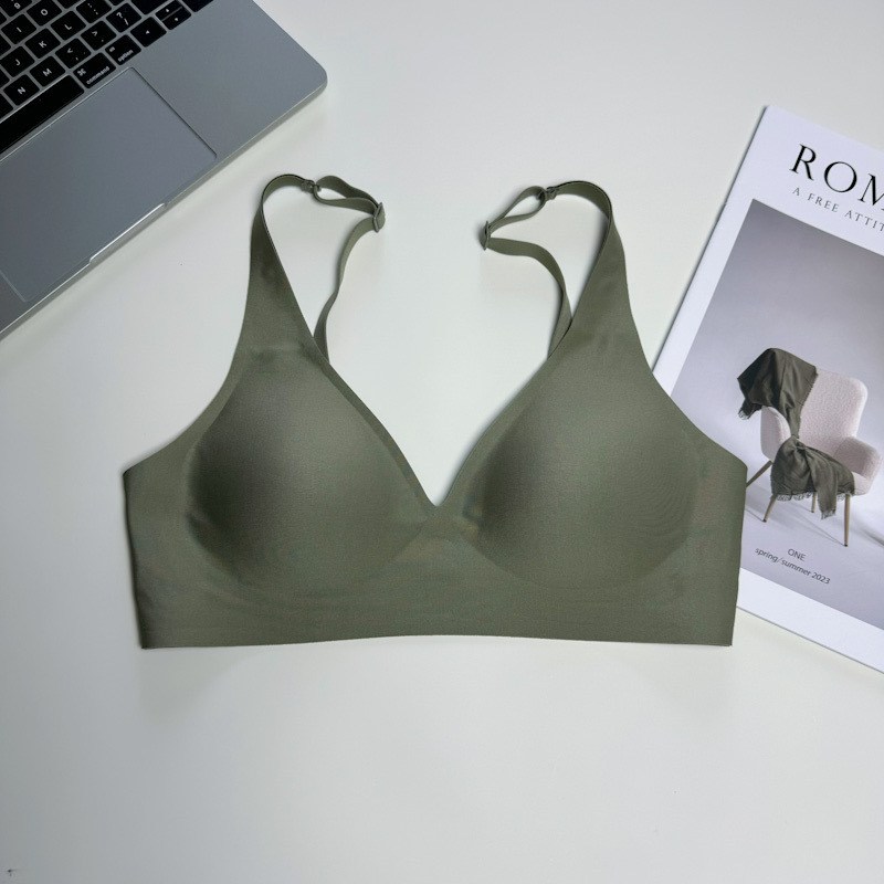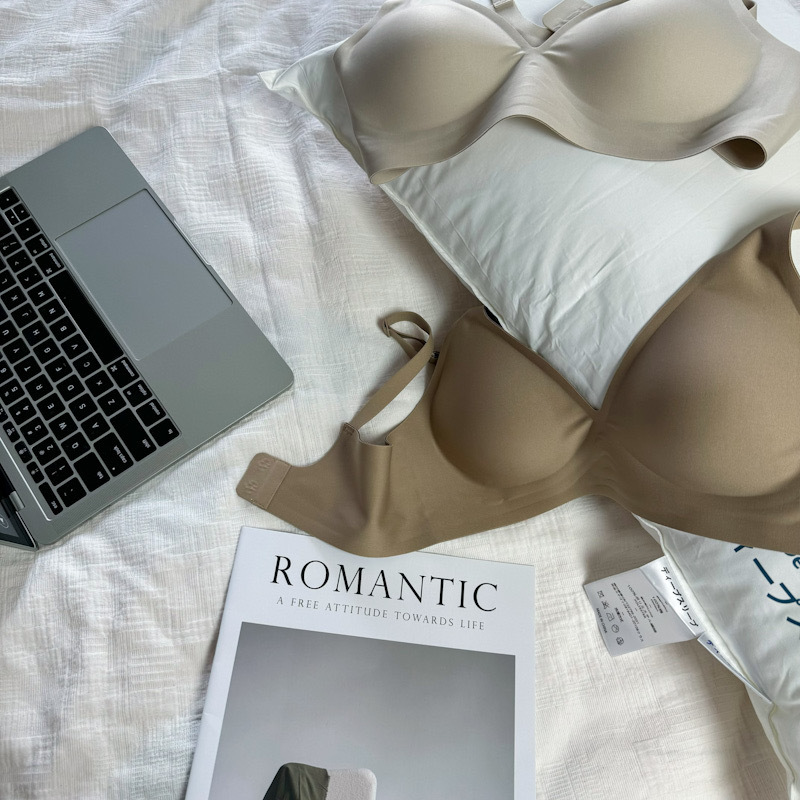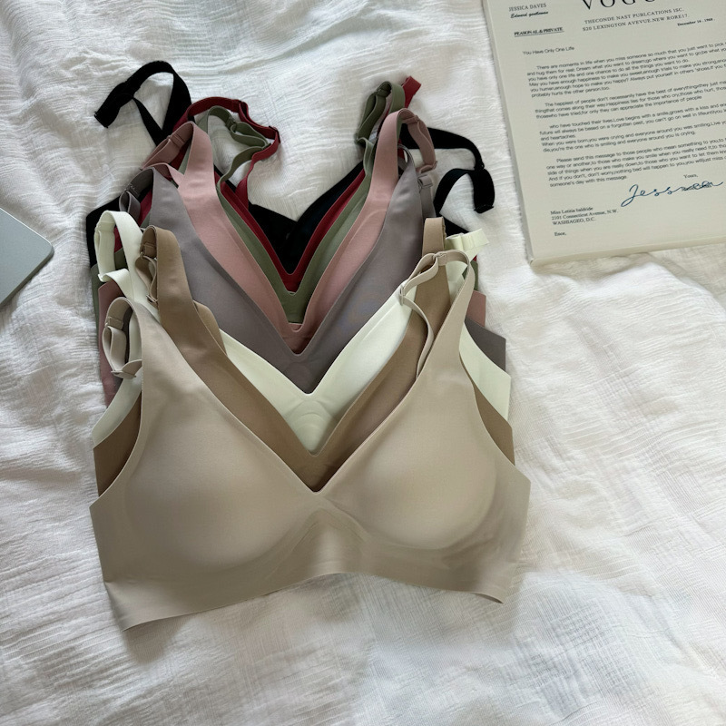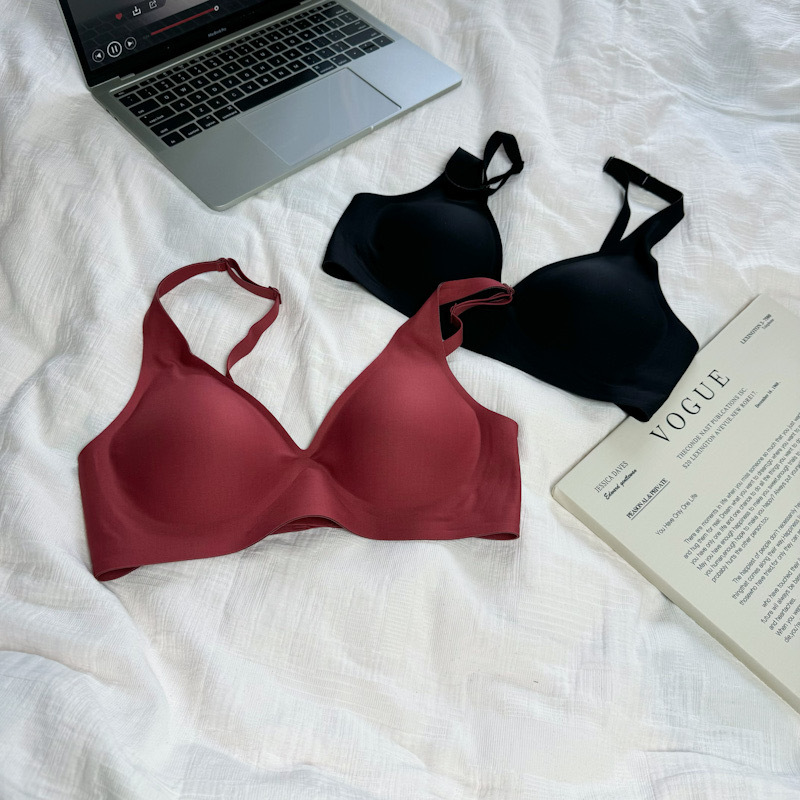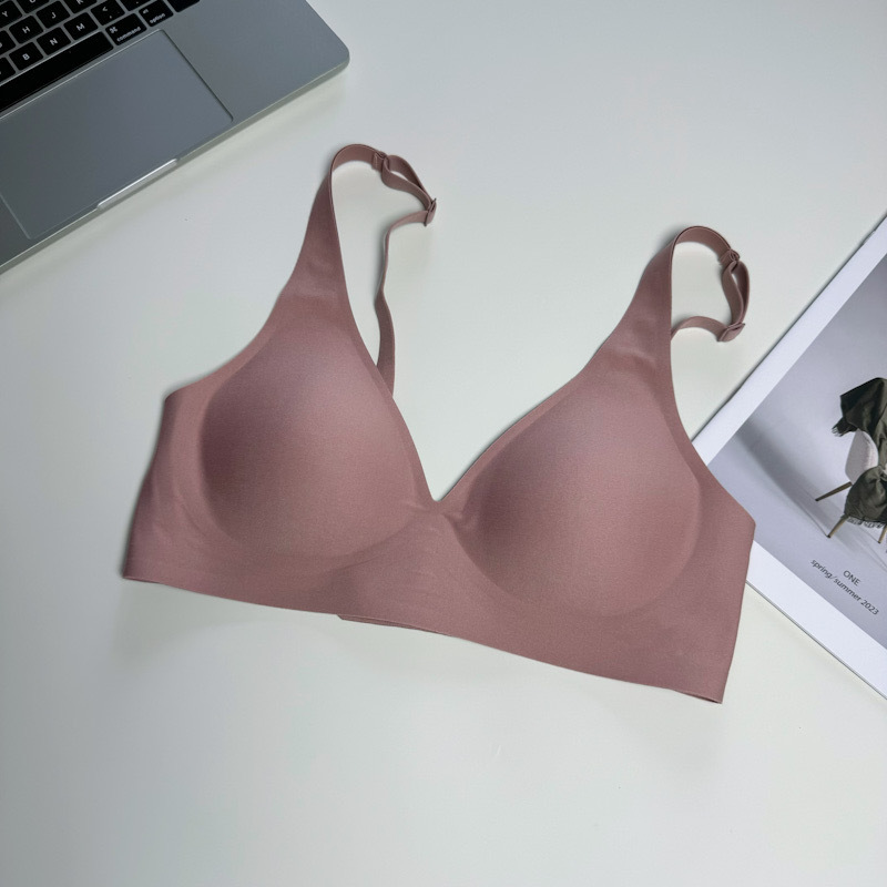 ゼリーラインのシームレスブラ、薄型、小胸用、寄せ上げ効果、目に見えないフィット感、ブラ工場、女性用ノンワイヤーブラ、卸売