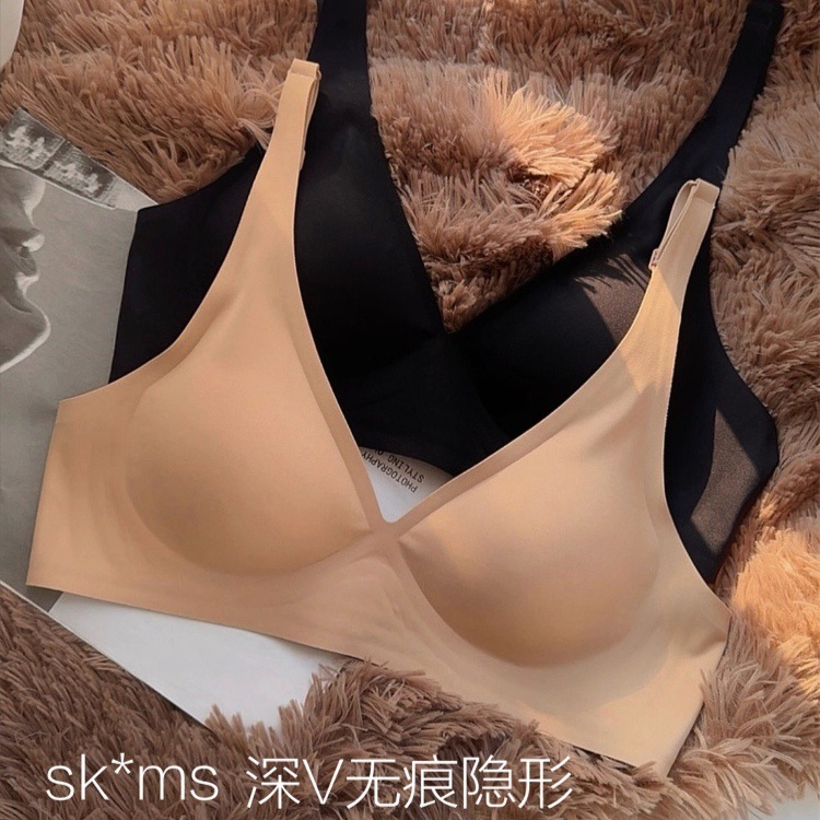 深V原版粉底液果冻条文胸薄无痕内衣女士聚拢防下垂透气舒适胸罩
