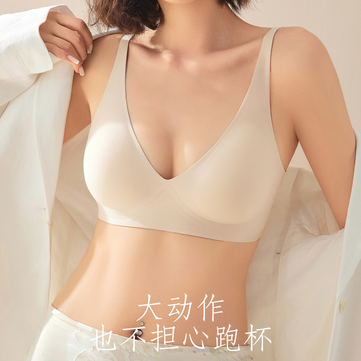 1014蚕丝蛋白粉底液隐形无痕内衣细吊带V领防走光无钢圈文胸