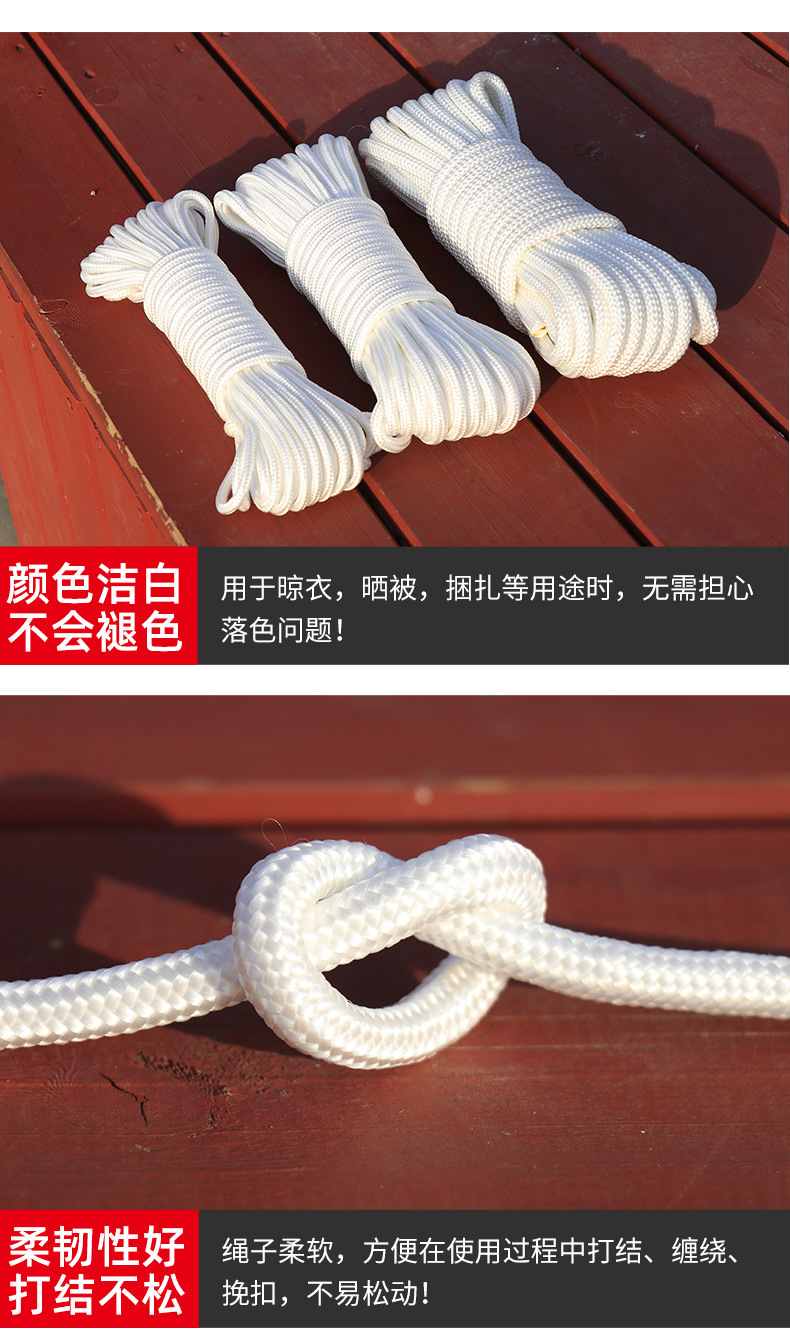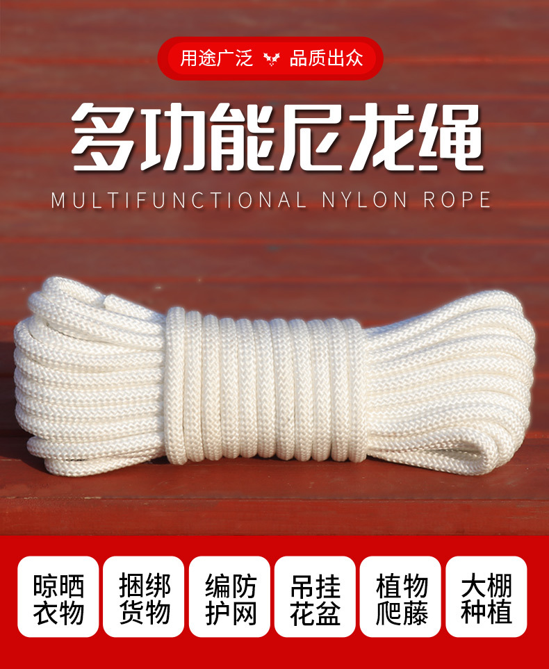 ナイロンロープ、結束紐、白い編み込み屋外ロープ、テントロープ、温室栽培ロープ、物干しロープ