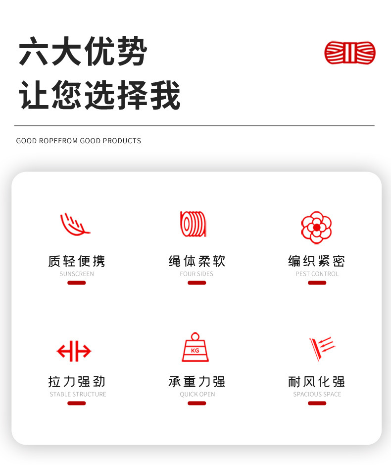 ロープナイロンロープ吊り苗ロープ耐摩耗性新しい材料ポリエチレンロープトラックロープハウス圧膜ロープ