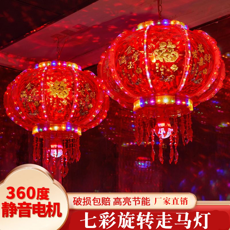 新年提灯led回転走馬灯七彩ベランダシャンデリア結婚ジョー移転福字旧正月玄関紅提灯