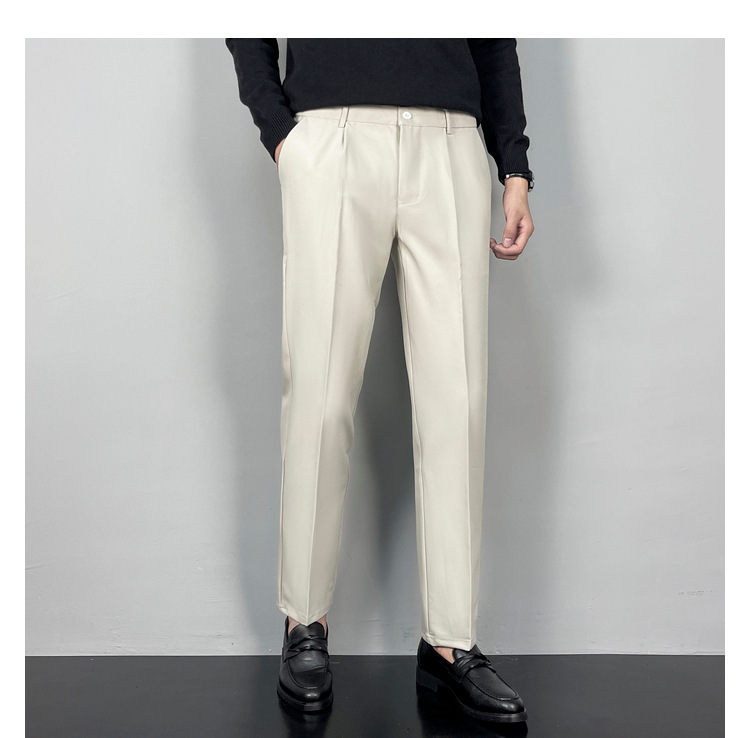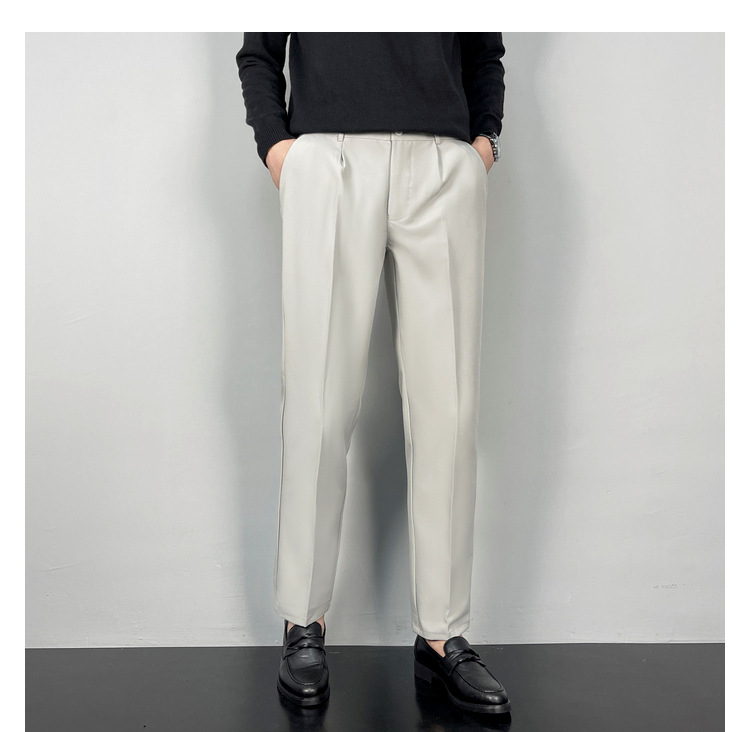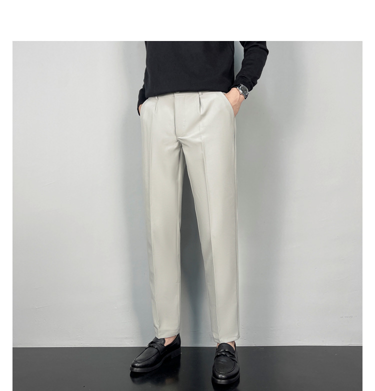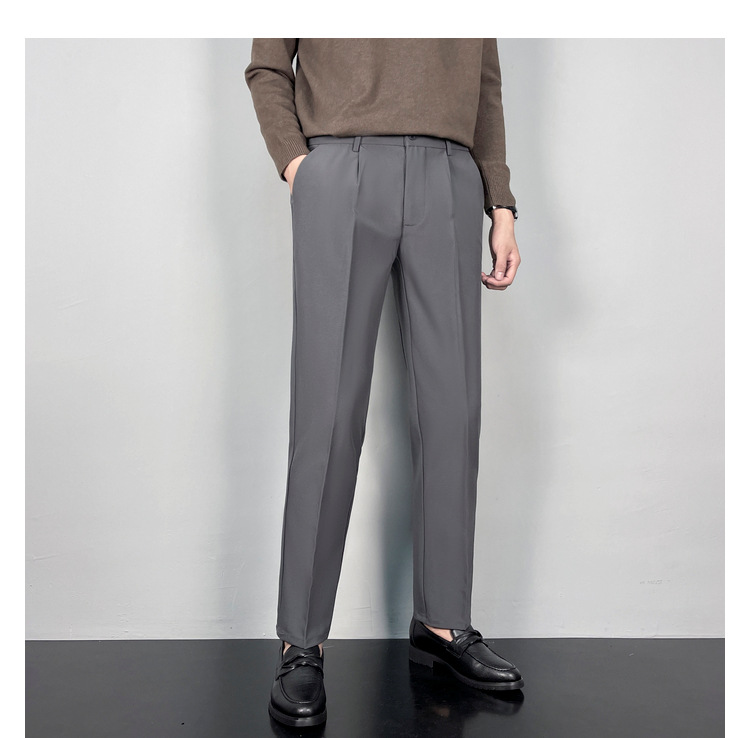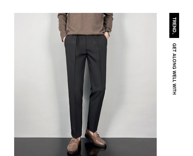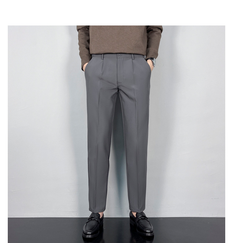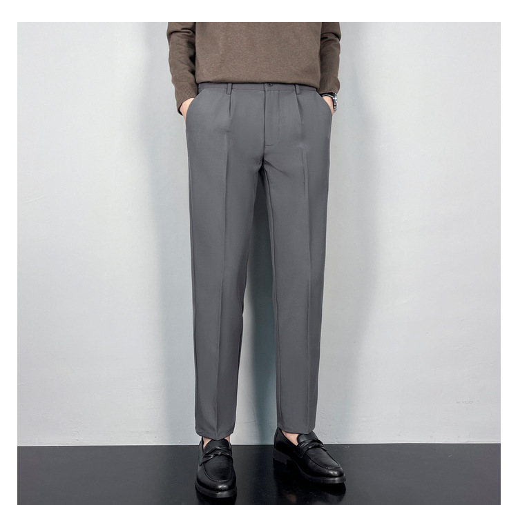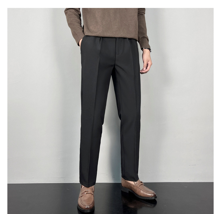 スーツパンツメンズストレッチストレートカジュアルパンツ韓国風トレンディボーイズ9点パンツ万能スリムブラックスーツパンツ