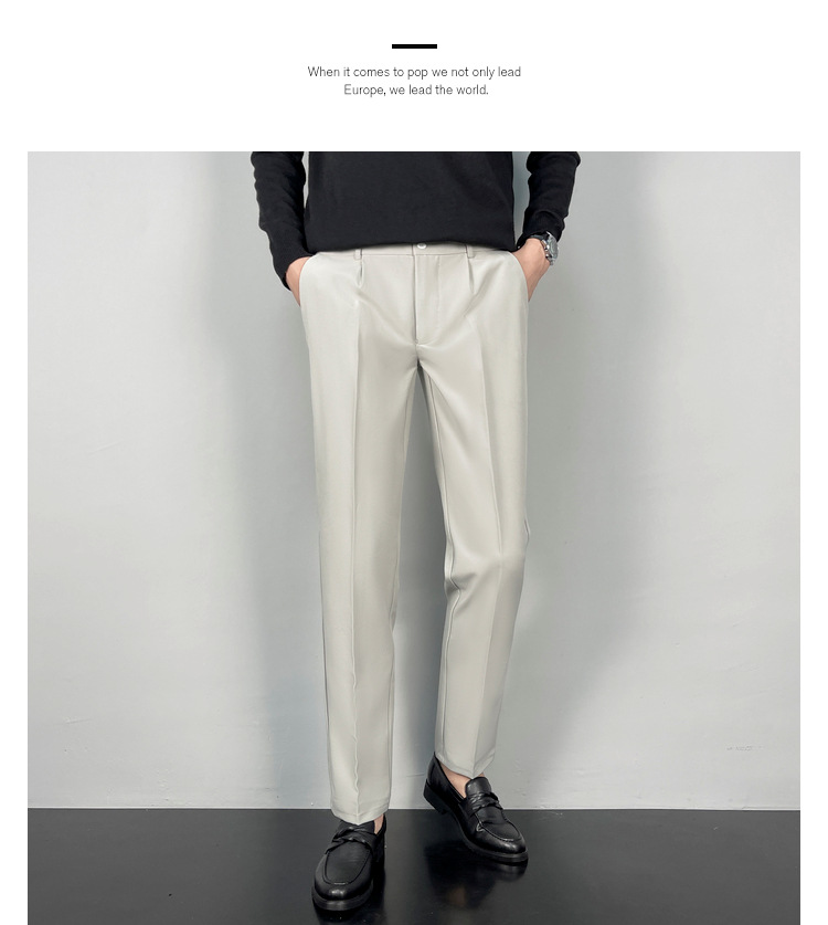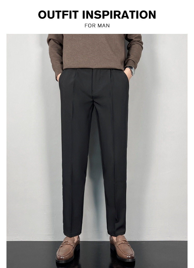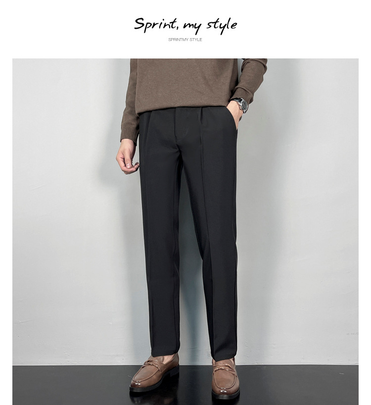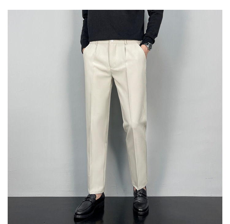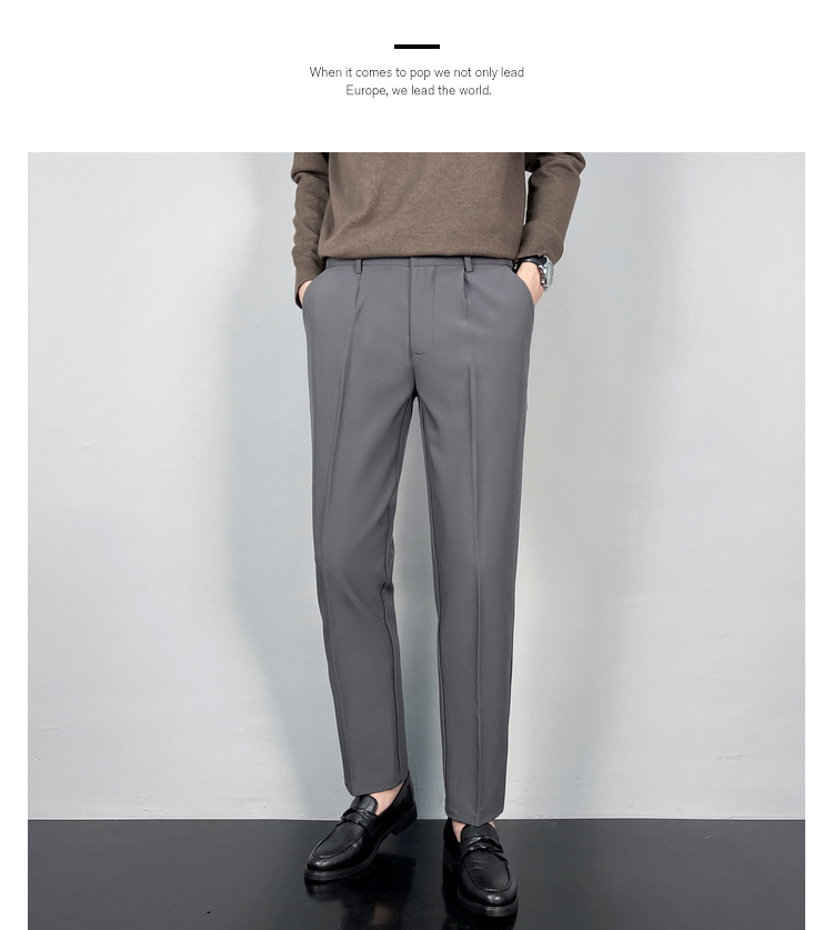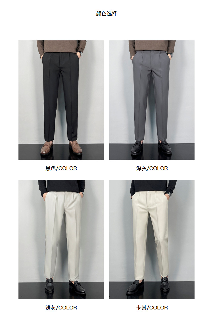 スーツパンツメンズストレッチストレートカジュアルパンツ韓国風トレンディボーイズ9点パンツ万能スリムブラックスーツパンツ