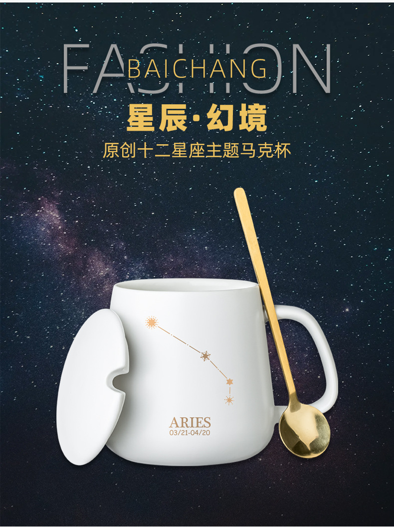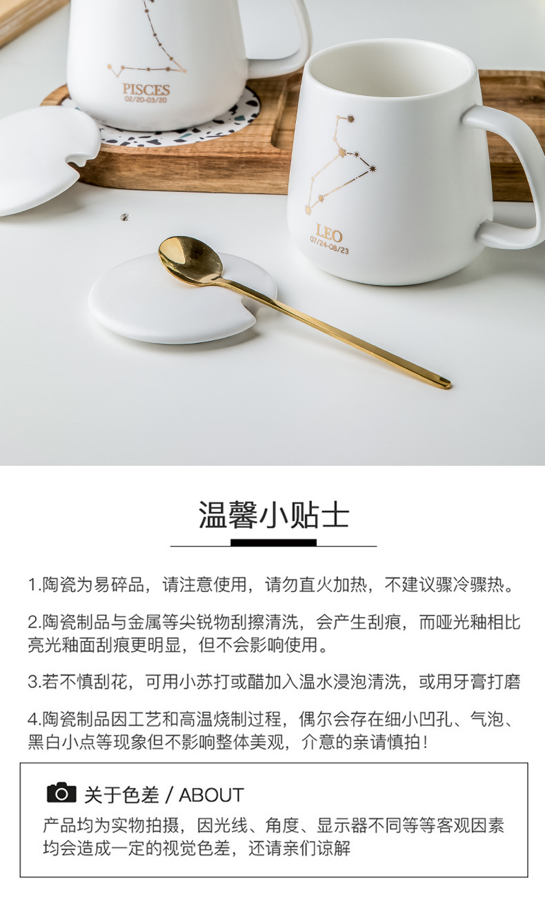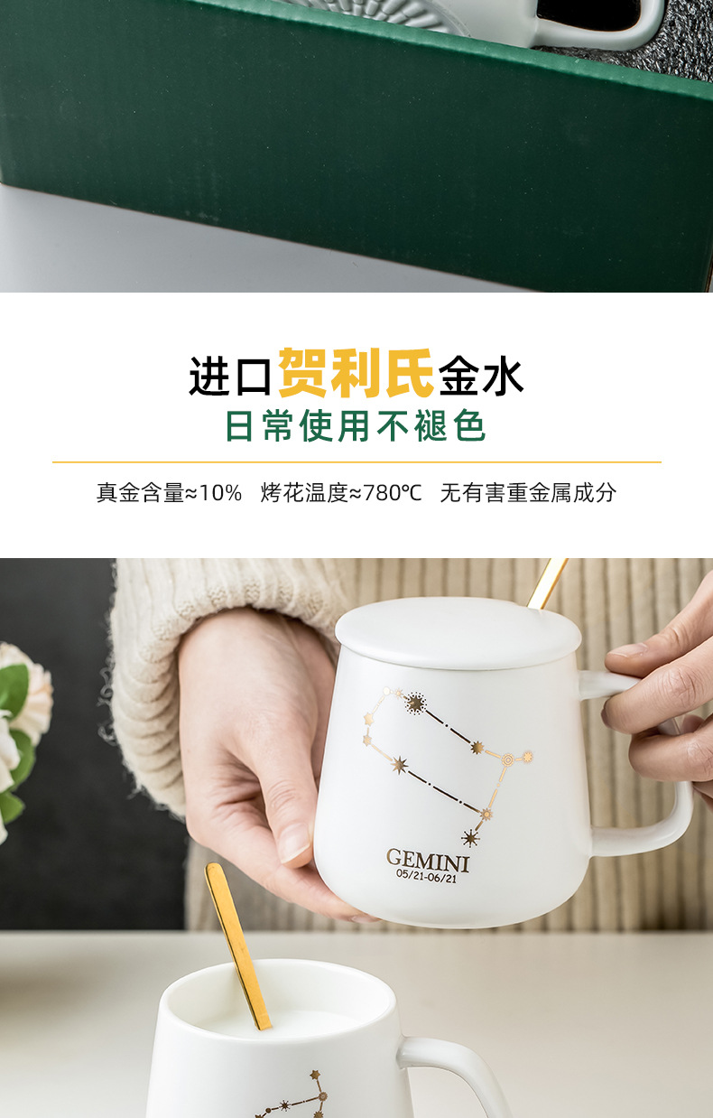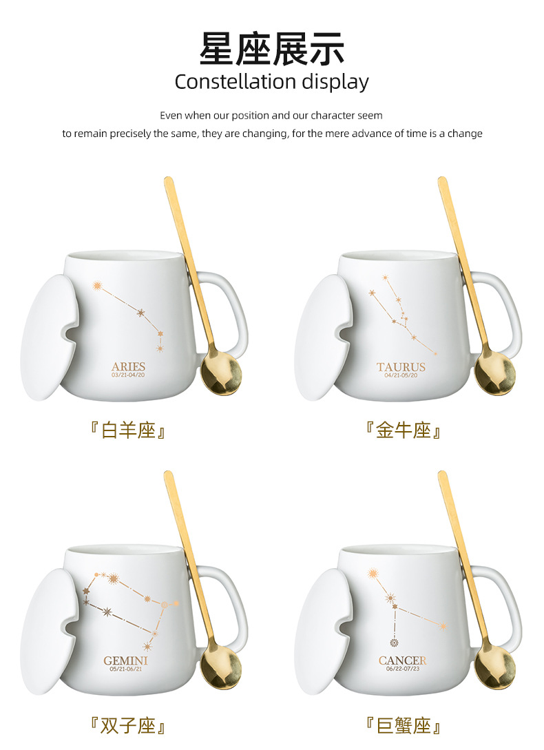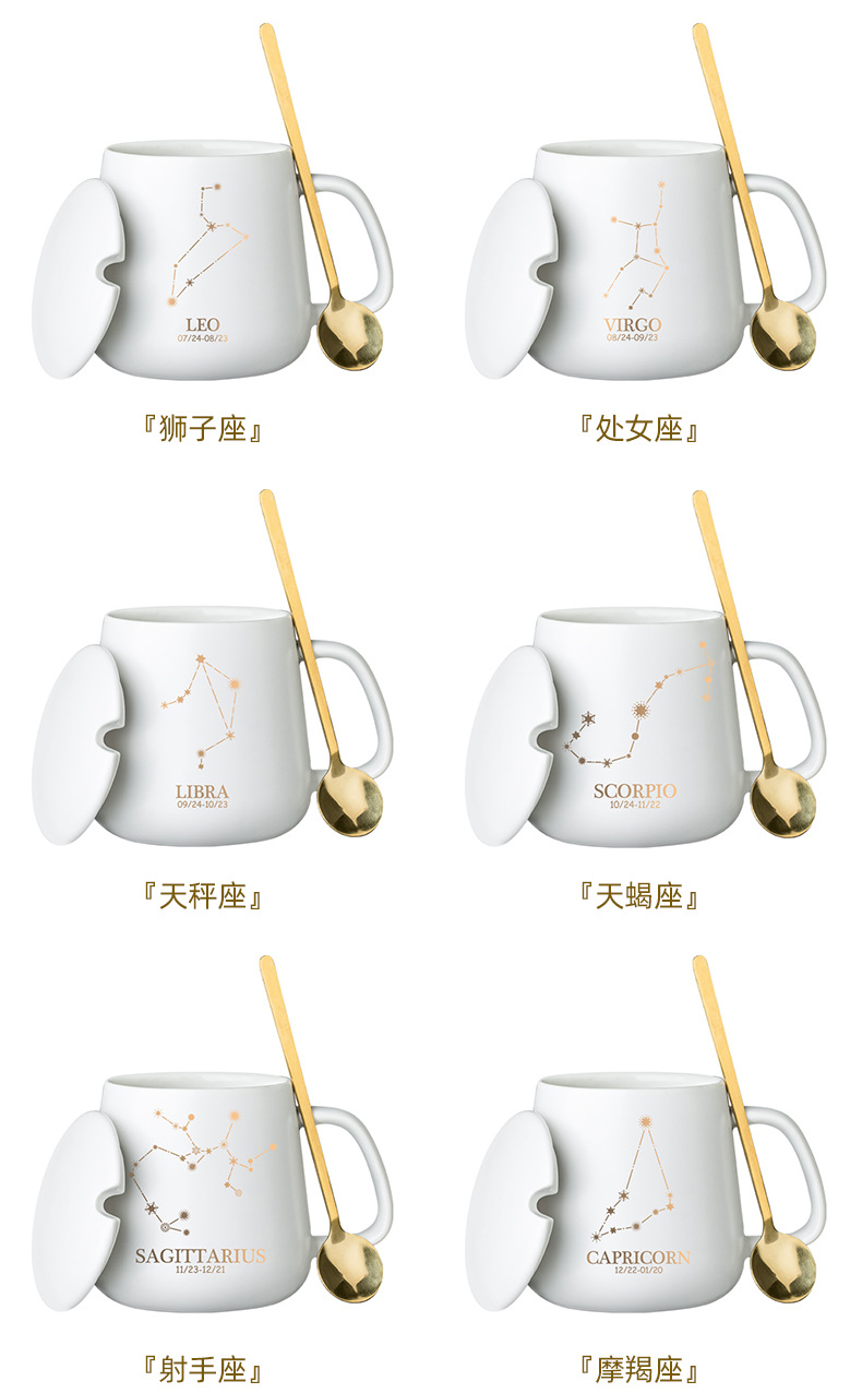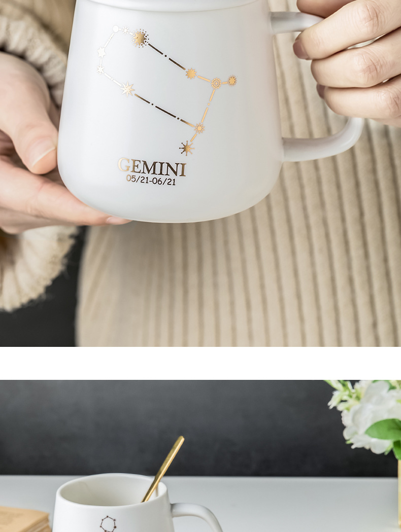クリエイティブ個性カップ陶磁器星座マグカップ蓋付きスプーンカップルカップ家庭用オフィスコーヒーカップ