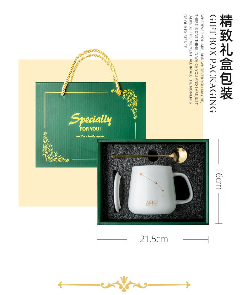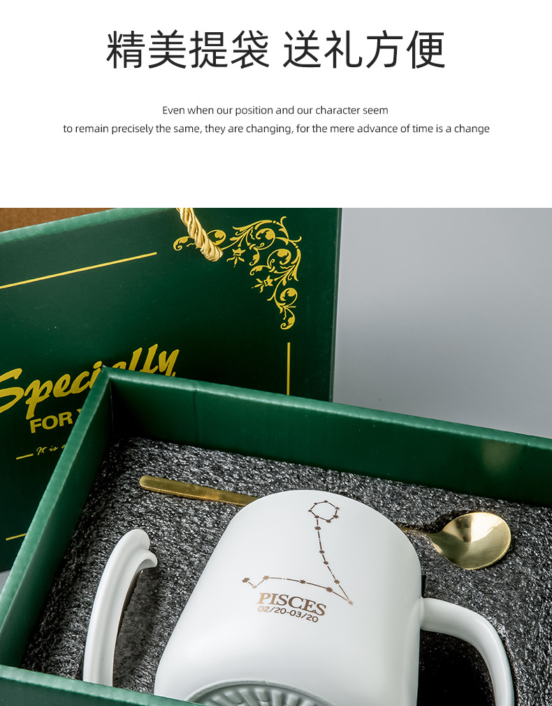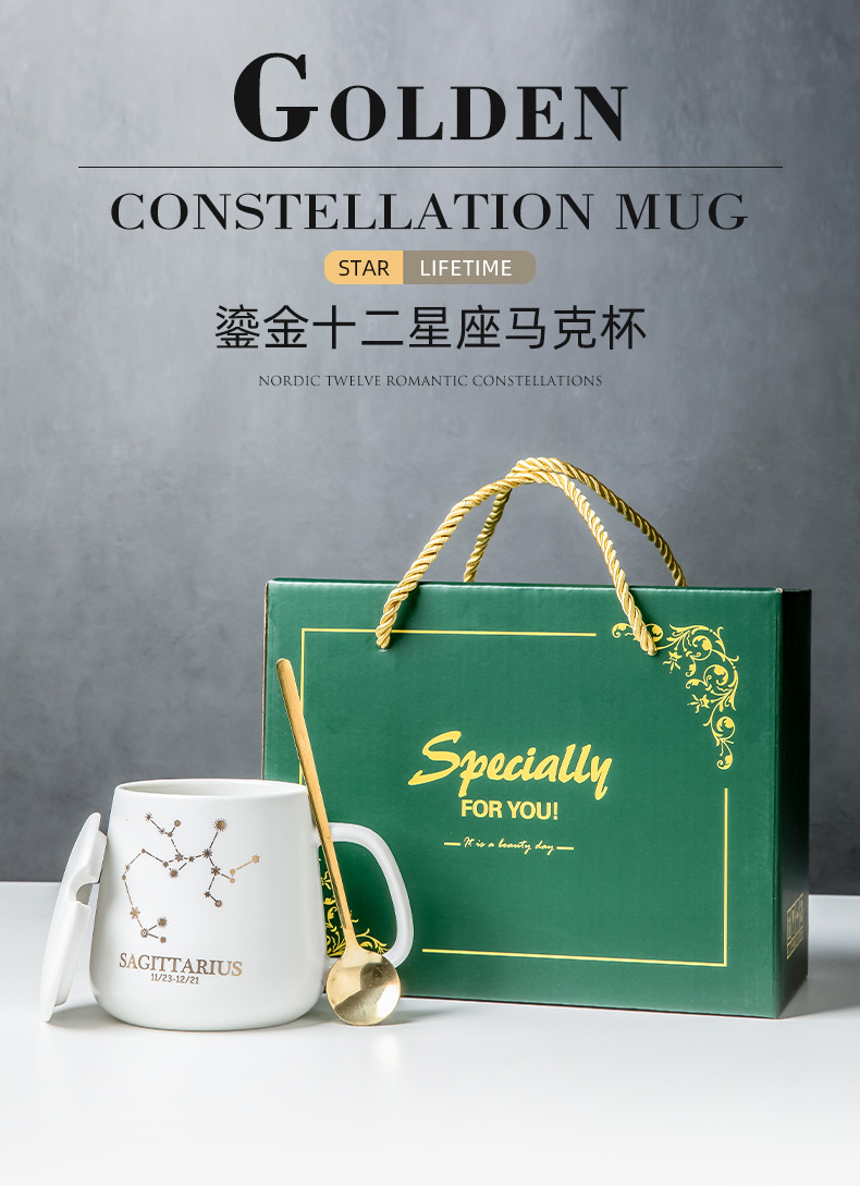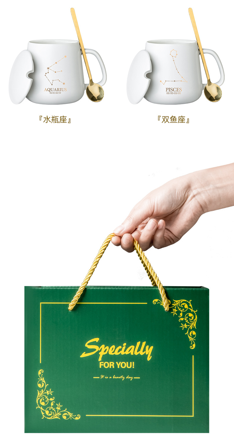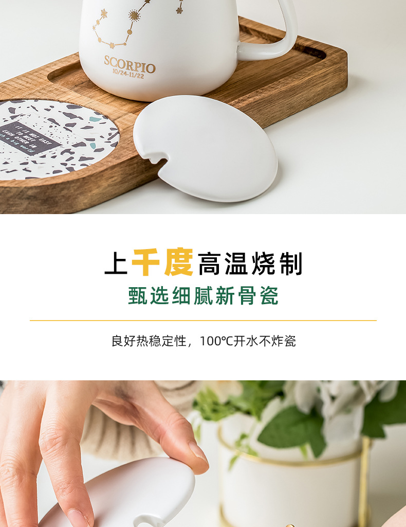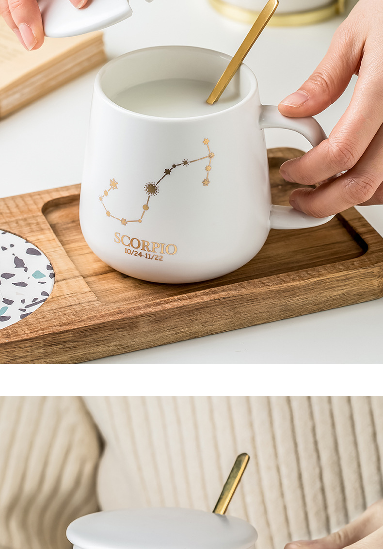 クリエイティブ個性カップ陶磁器星座マグカップ蓋付きスプーンカップルカップ家庭用オフィスコーヒーカップ